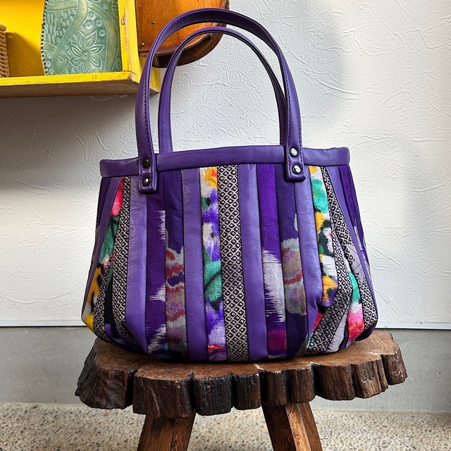 革と古布のパッチワークバッグ(パープルの革+着物生地)01016-128