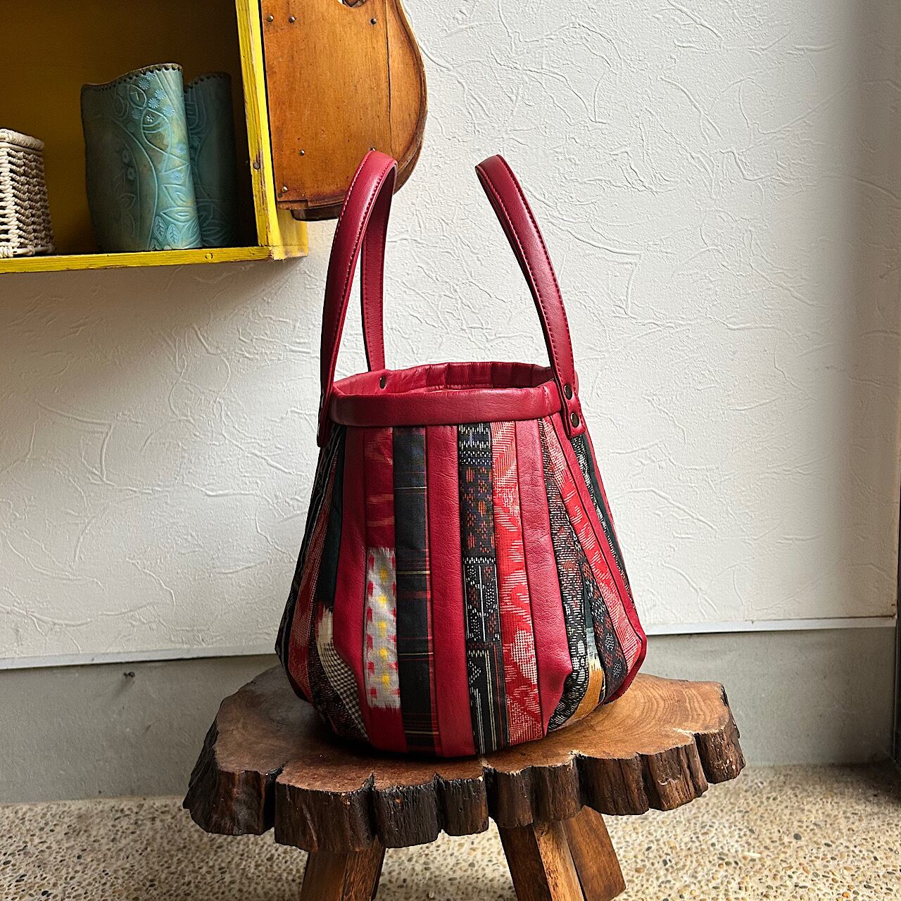 革と古布のパッチワークバッグ(ワインレッドの革+着物生地)01016-116