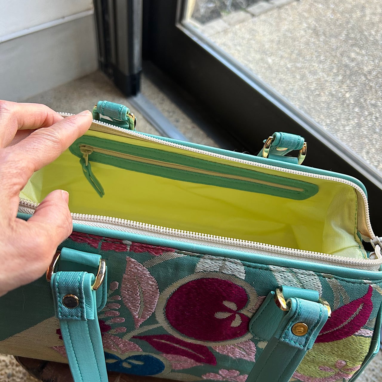 古い帯ですが色と柄が素敵だったのでバッグに仕立てました。
