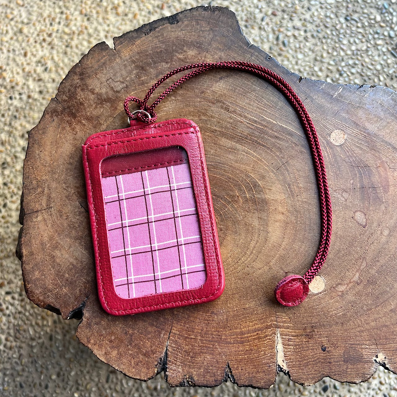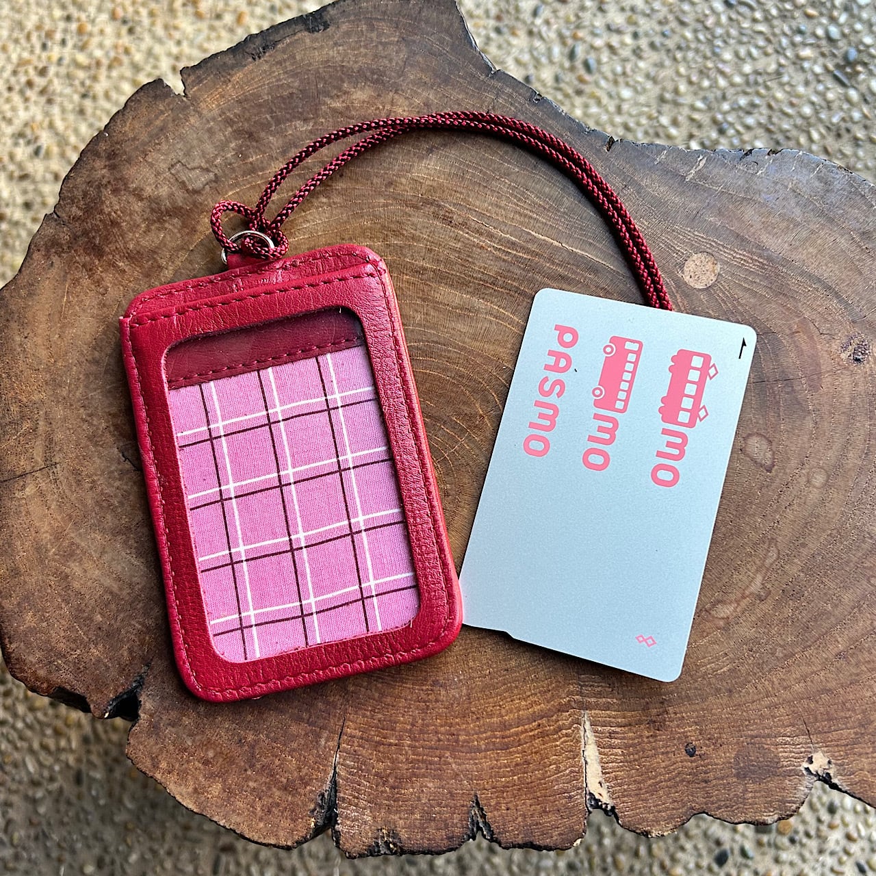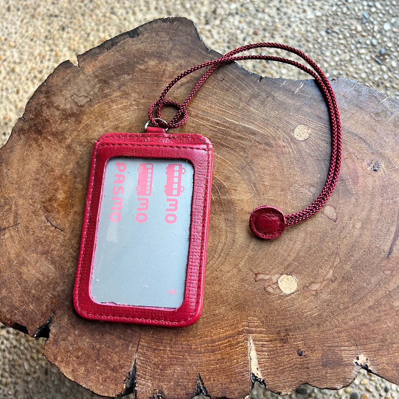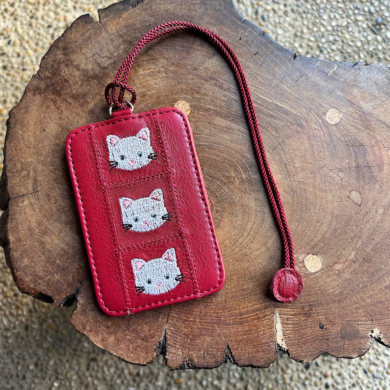パスケース1枚用(ワインレッドの革に白猫の刺繍)03004-66
