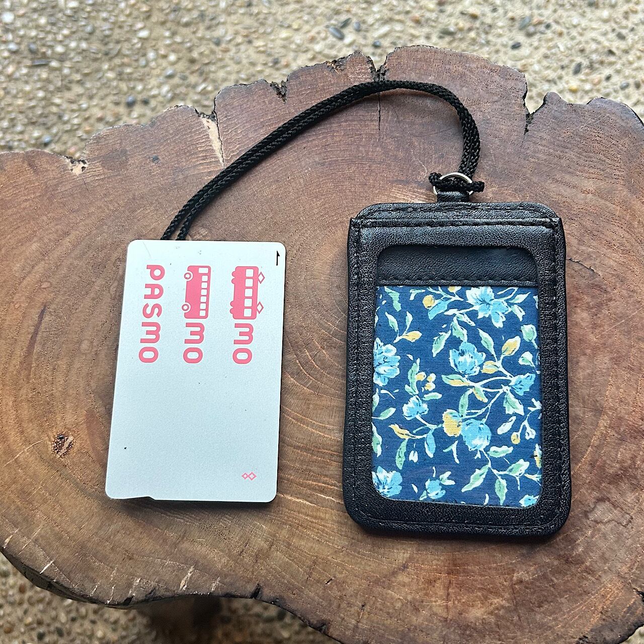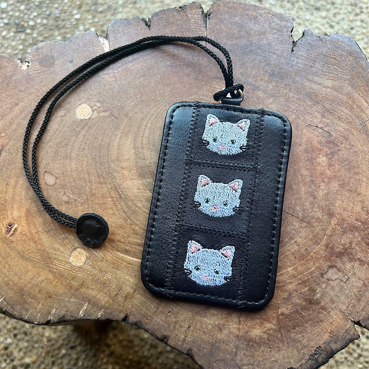 パスケース1枚用(黒の革に白猫の刺繍)03004-69