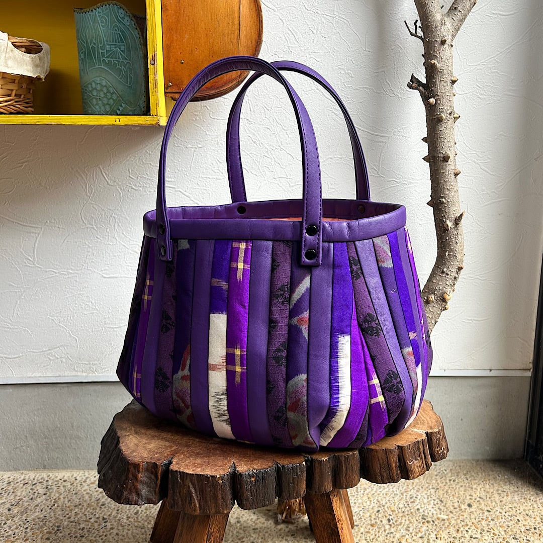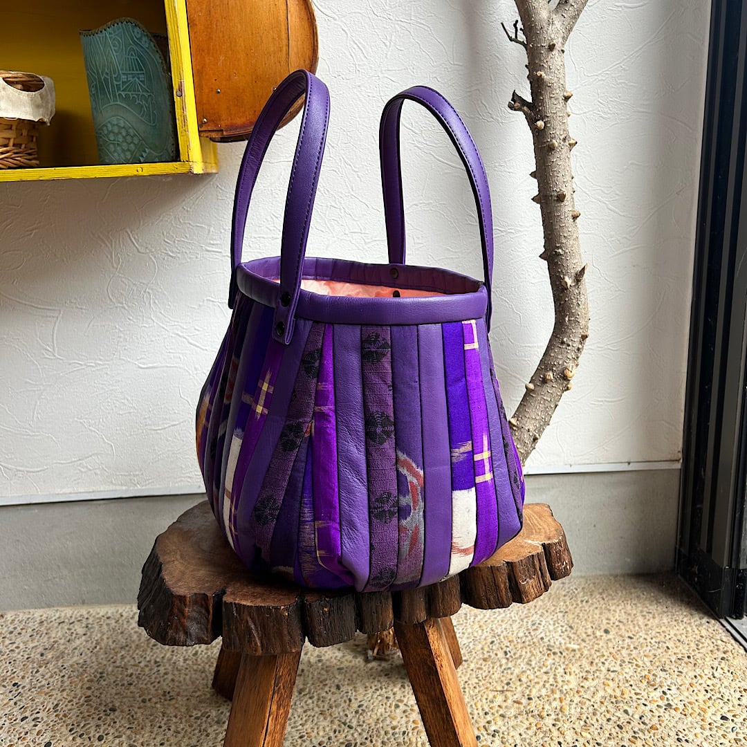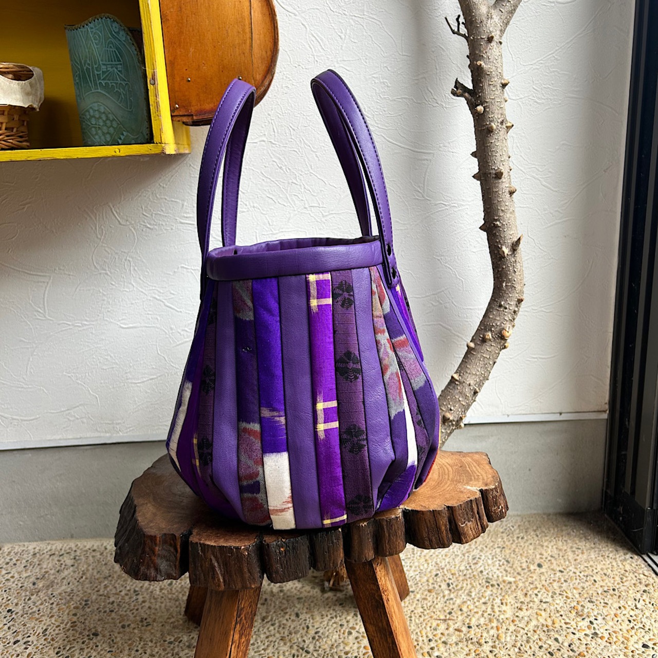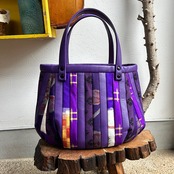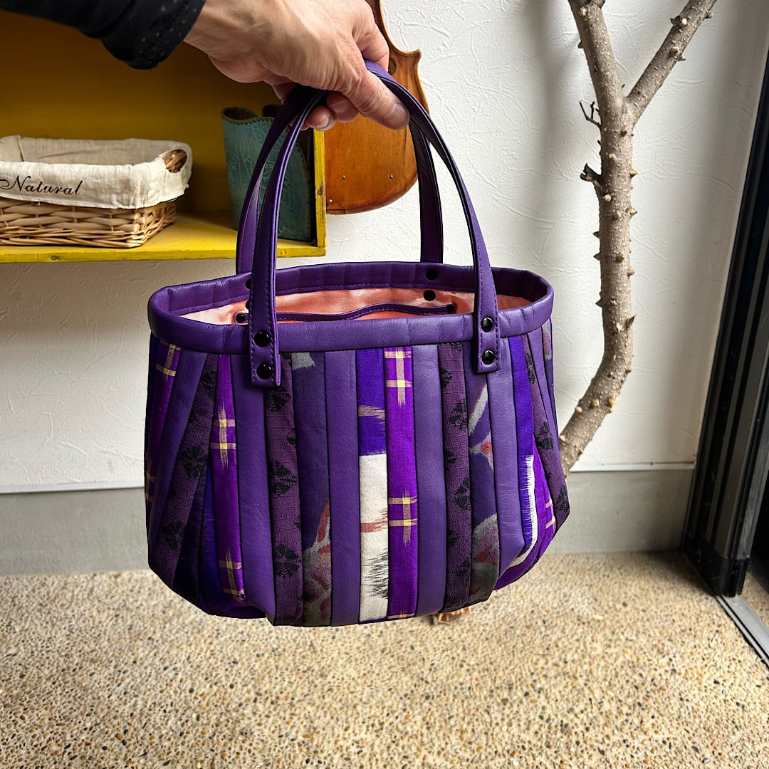 革と古布のパッチワークバッグ(パープルの革+着物生地)01016-132