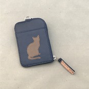 パスケース(小銭入れ付き・猫柄・紺)No.03003-01
