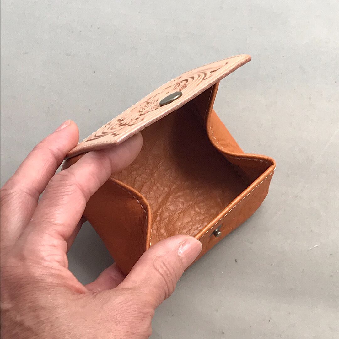 本体部分は柔らかな革を使用しており、より手に馴染みやすくなっています。後ろ側の外ポケットが意外と便利です。