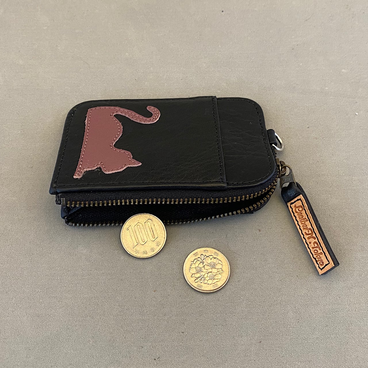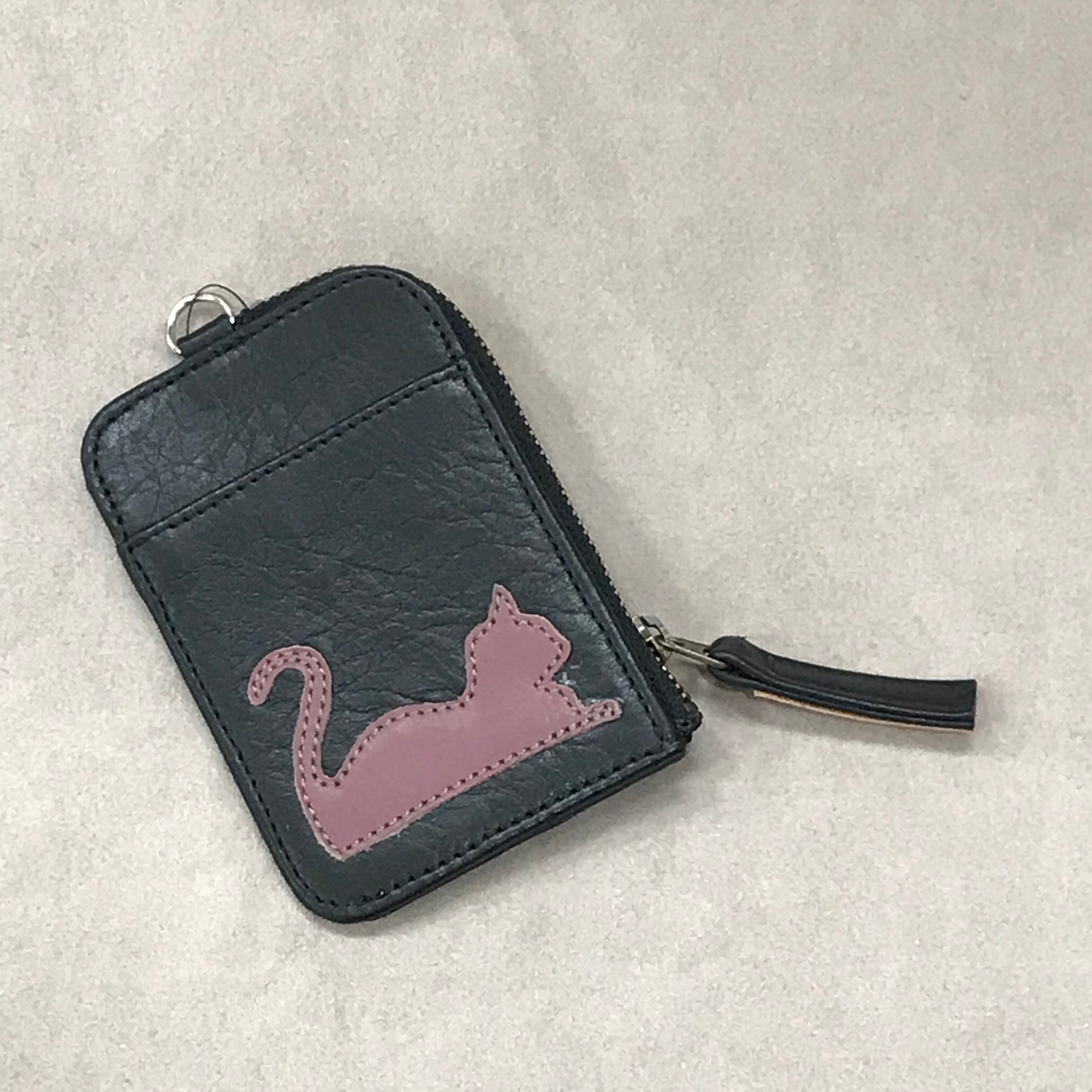 パスケース(小銭入れ付き、猫柄、ブラック)No.03003-04