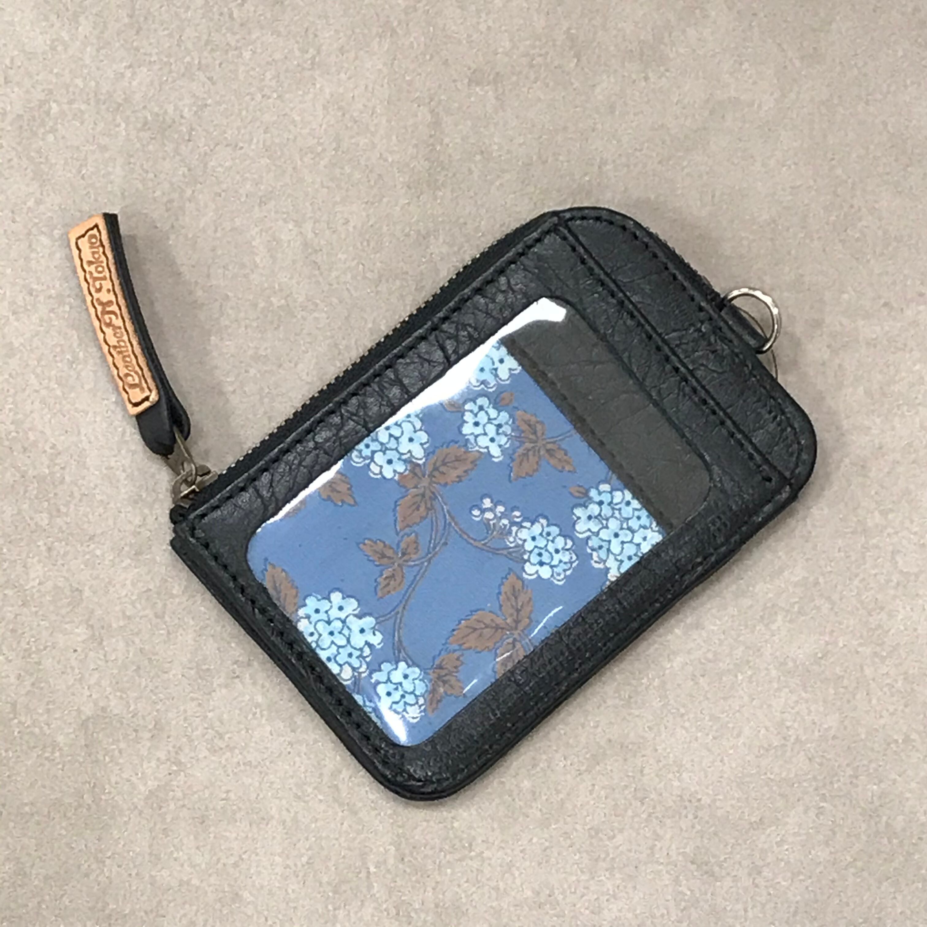裏表両面にカードポケットがあり、間に小銭等が入るファスナーポケット付きのパスケースです。