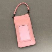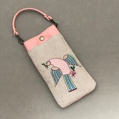 スマホポーチ(ピンク革、鳥の刺繡)No.03006-03