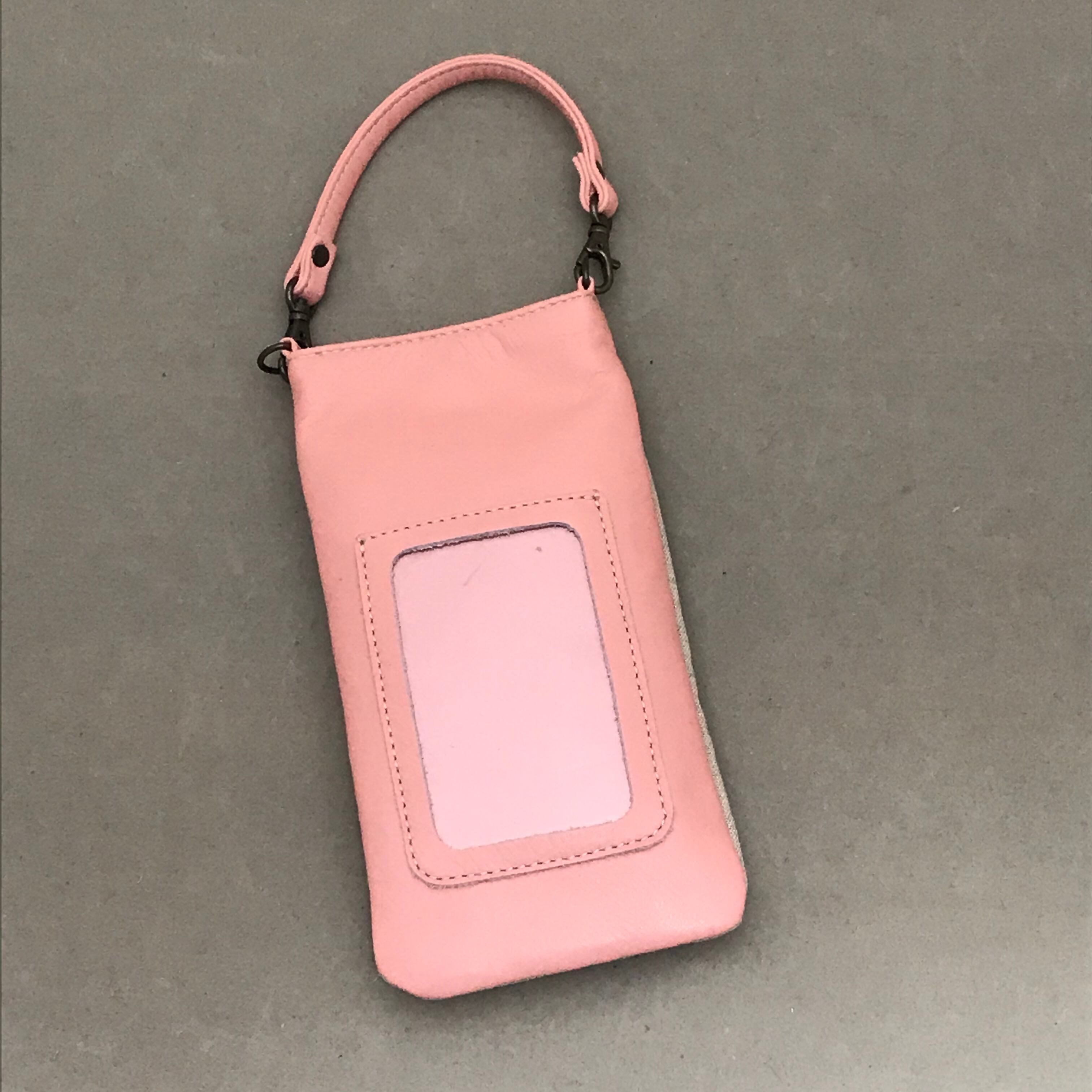 スマホが入るポーチ。ポケット感覚で身に付けられるスッキリした形です。
