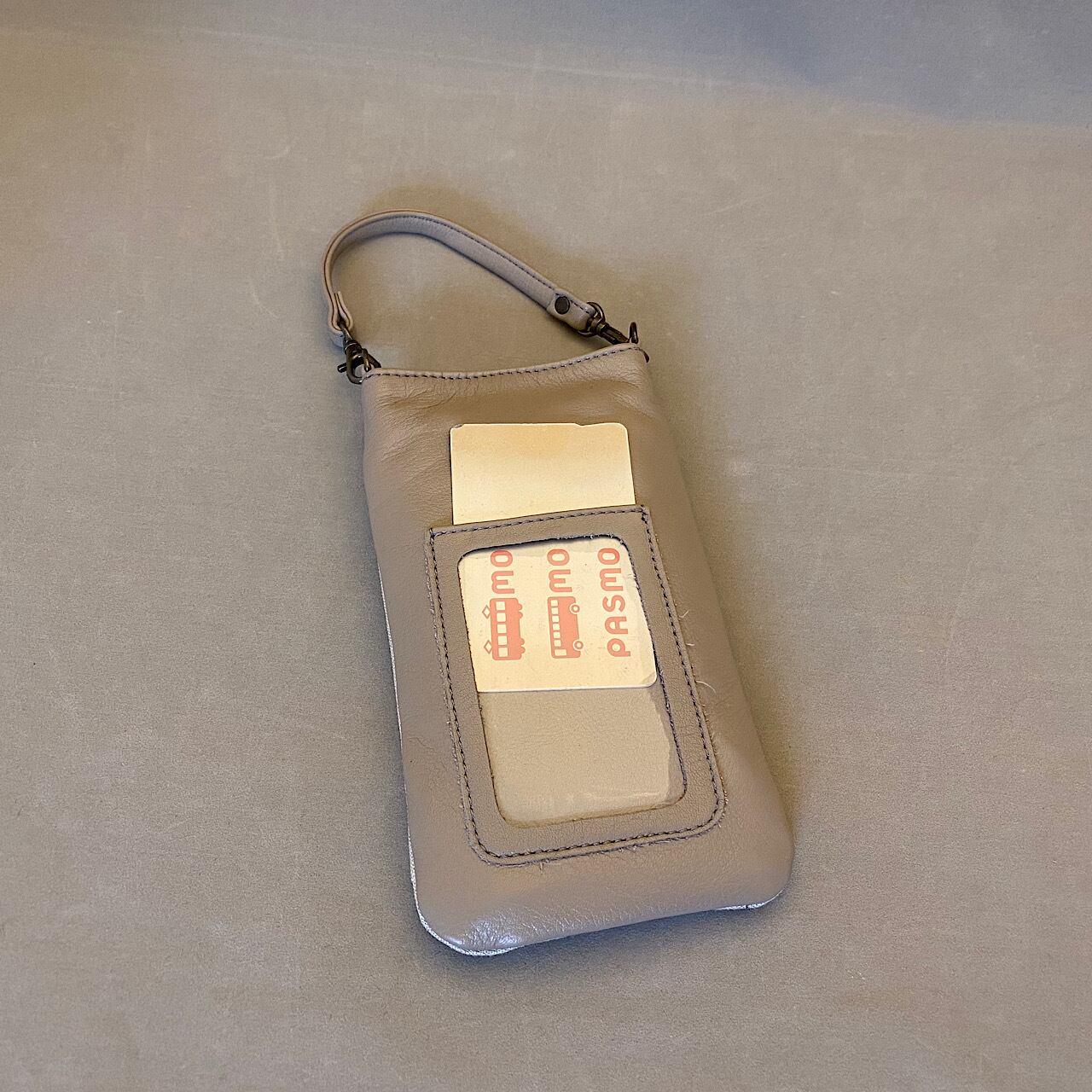 スマホが入るポーチ。ポケット感覚で身に付けられるスッキリした形です。