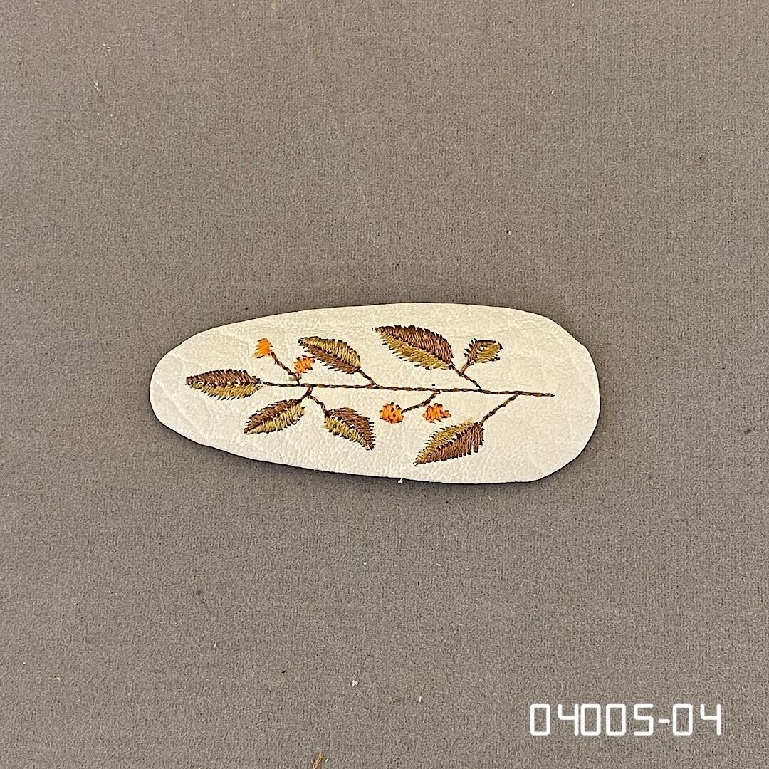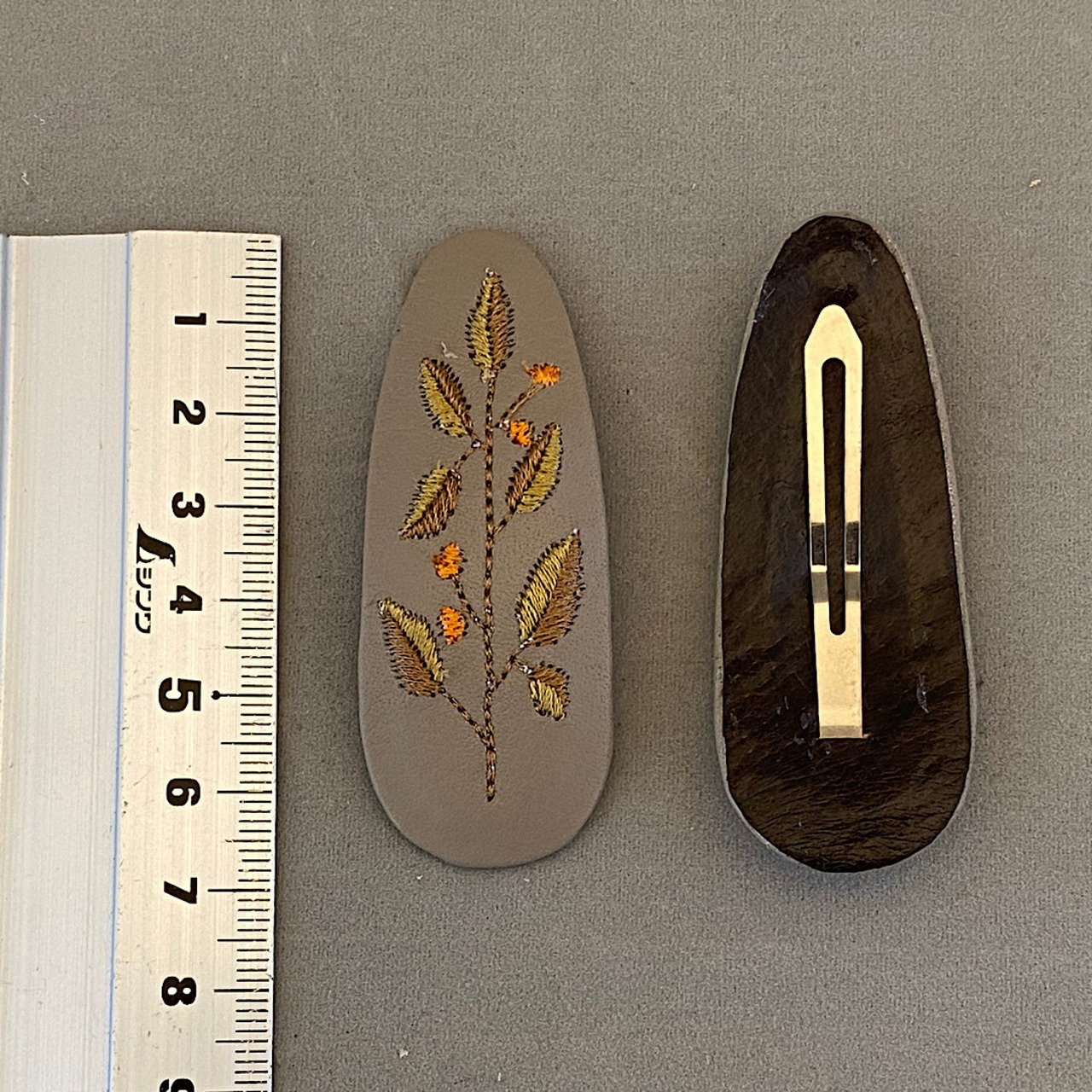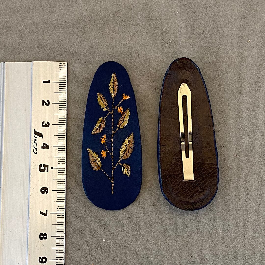 革に刺繍をしてパッチンピンに仕立てました。同色2個セットになります。