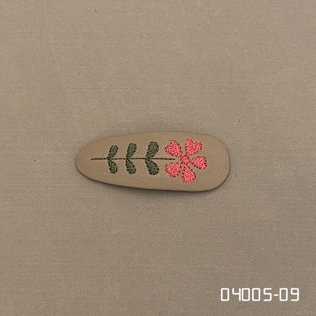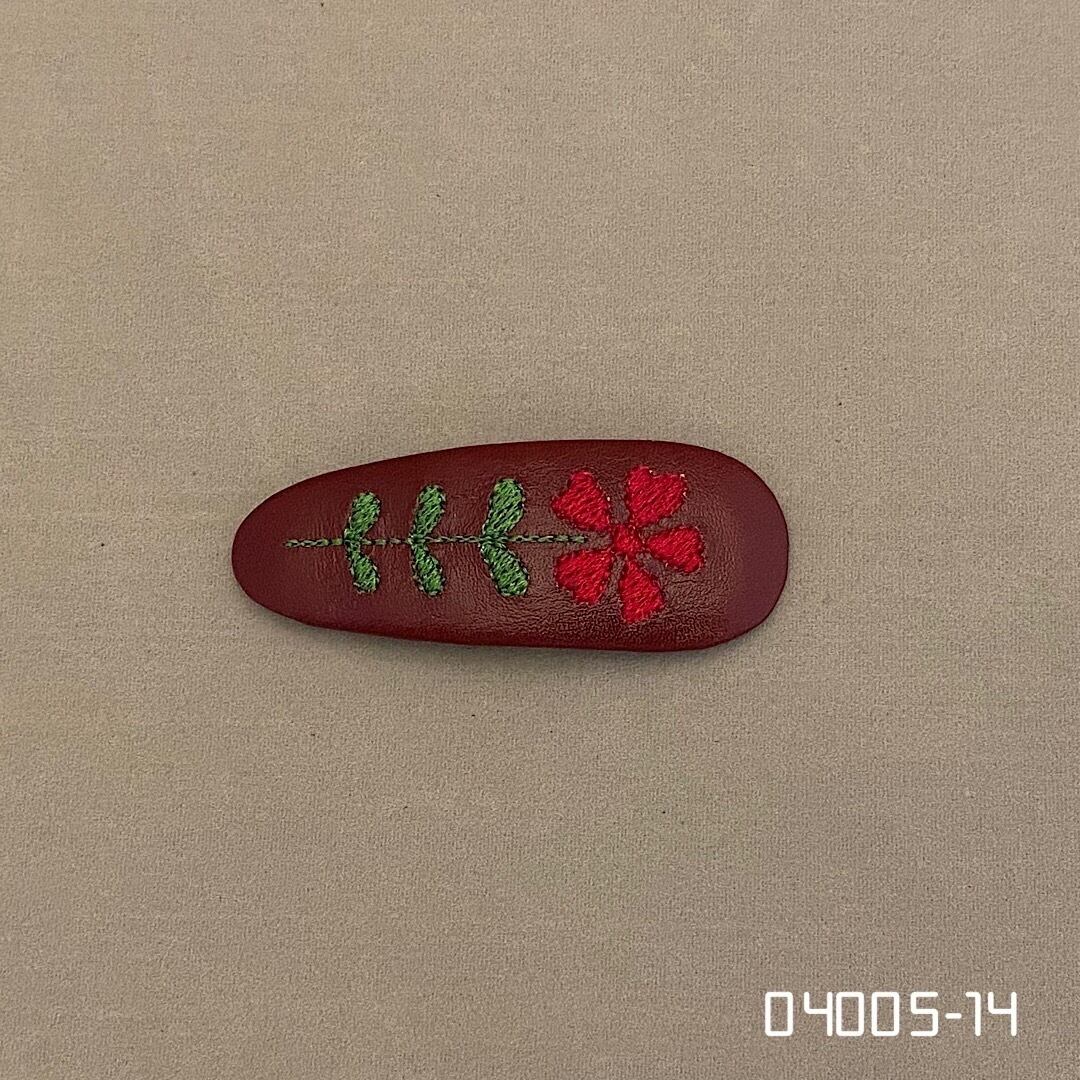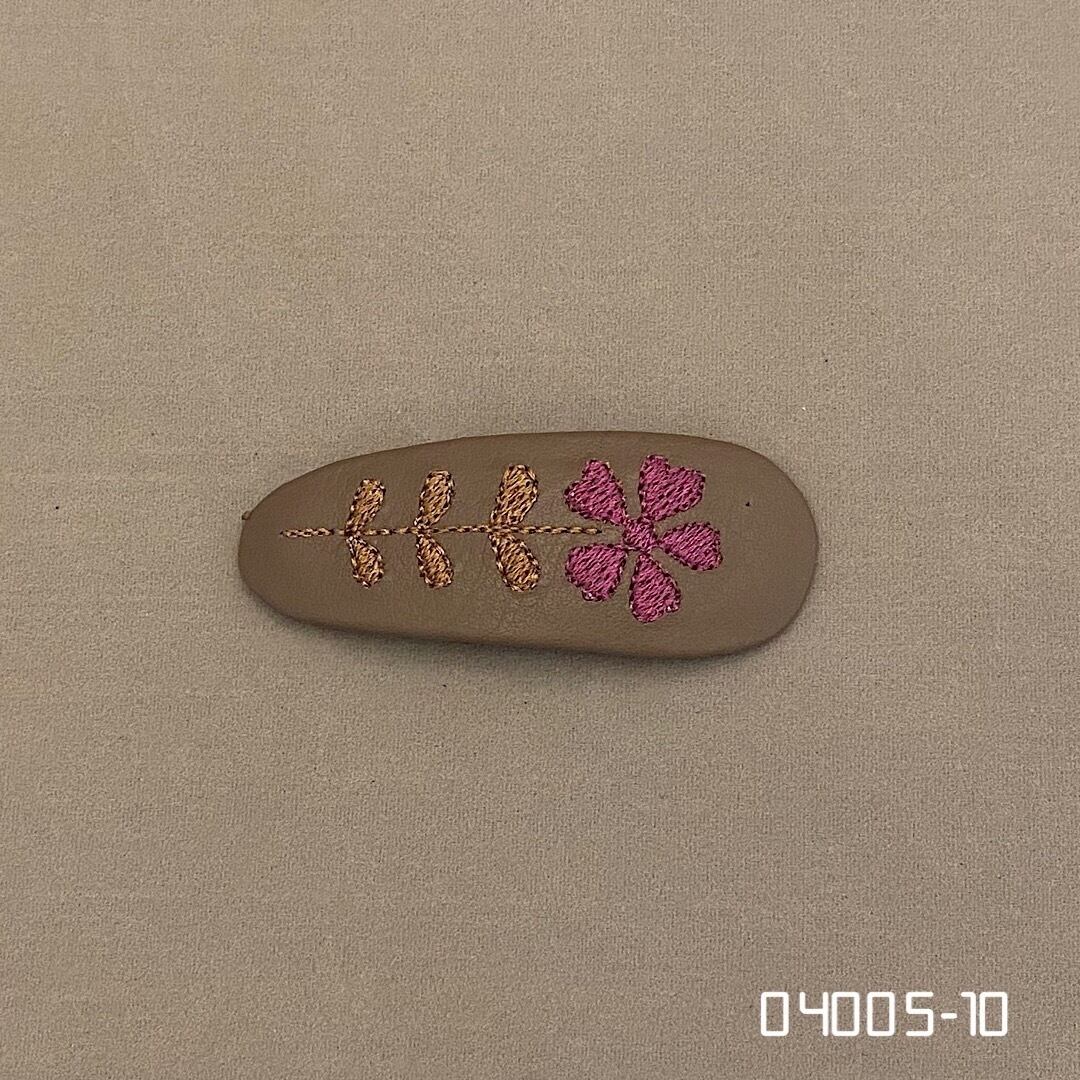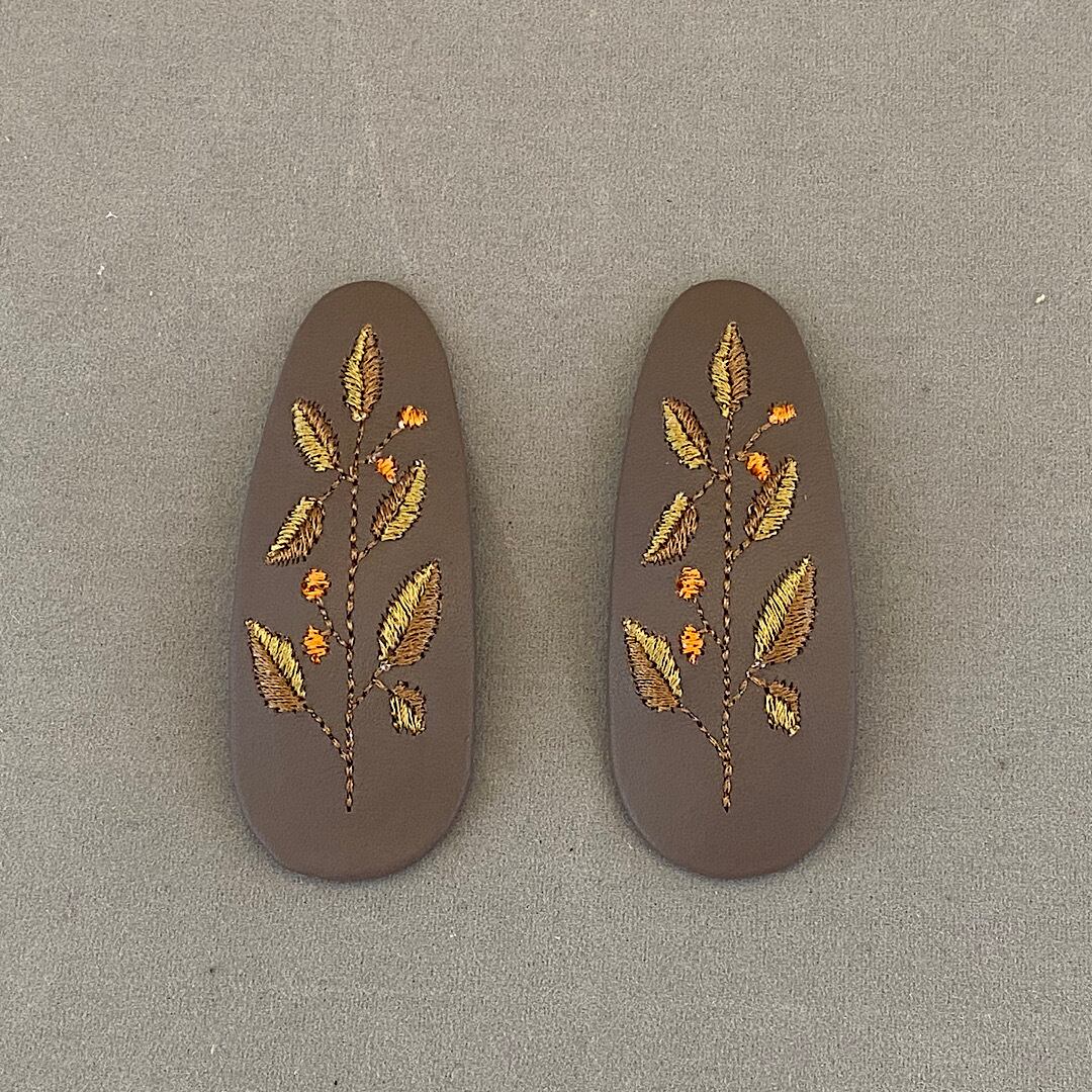 革に刺繍をしてパッチンピンに仕立てました。同色2個セットになります。