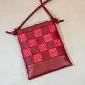 革にかわいい花の刺繍をしてパッチワークで仕立てたサコッシュです。