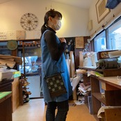 革パッチワークサコッシュ(黒+パープルの花の刺繍) No.01012-05