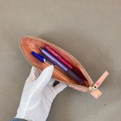 ペンケースにちょうど良いサイズの可愛い革のパッチワークのファスナーポーチです。