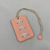 パスケース1枚用(ピンクに白猫の刺繍)No.03004-17