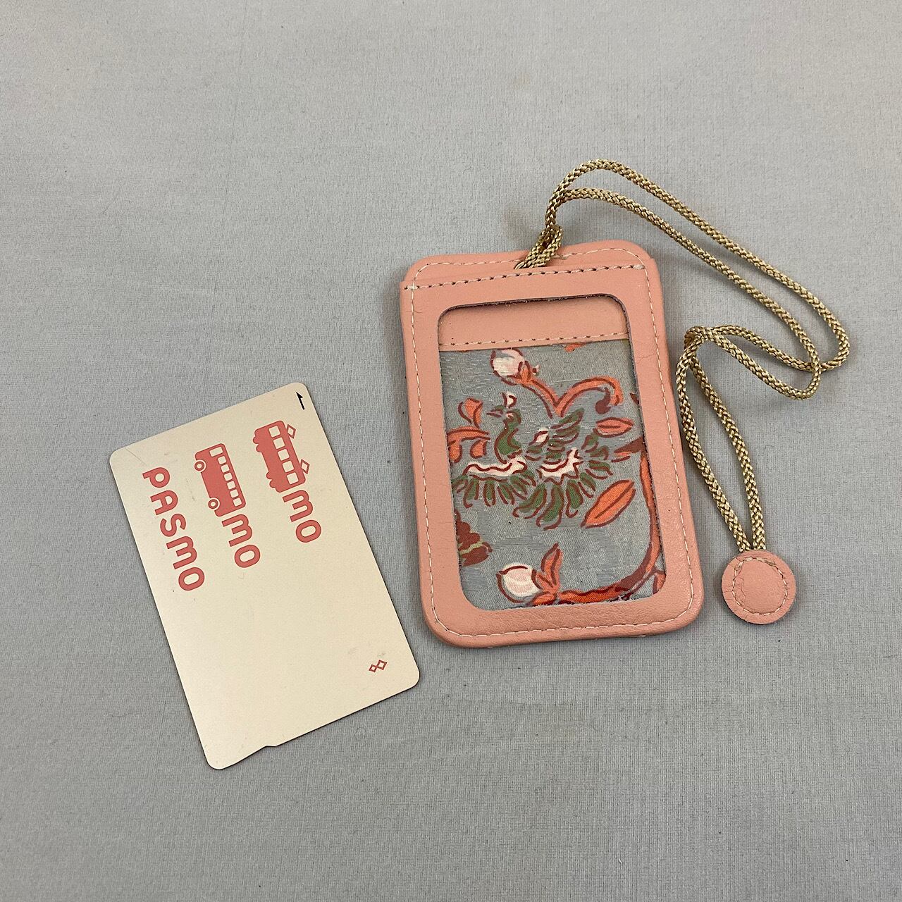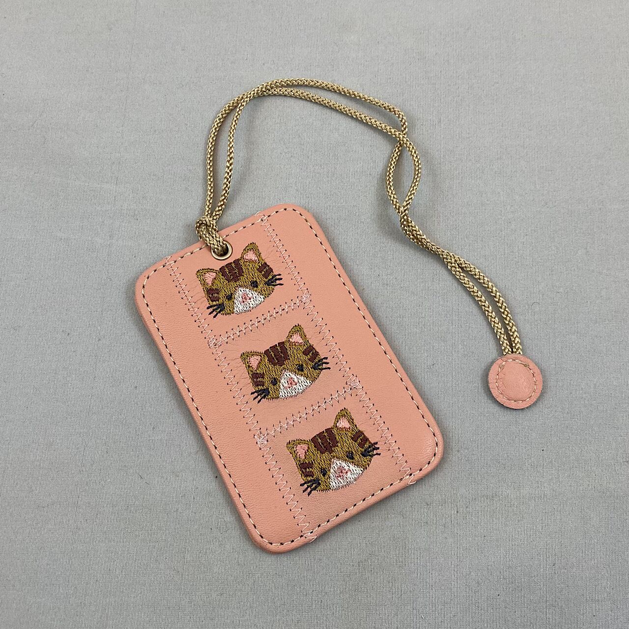 パスケース1枚用(ピンクに茶トラ猫の刺繍)No.03004-18