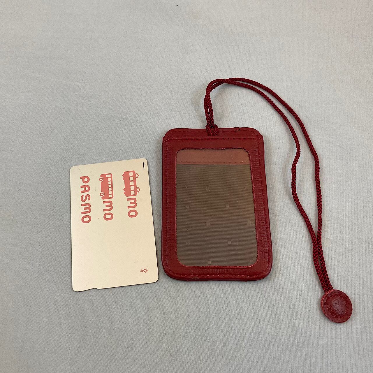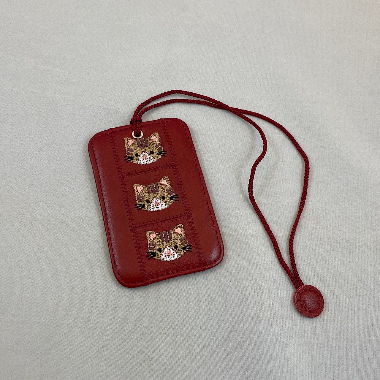 パスケース1枚用(エンジに茶トラ猫の刺繍)No.03004-22