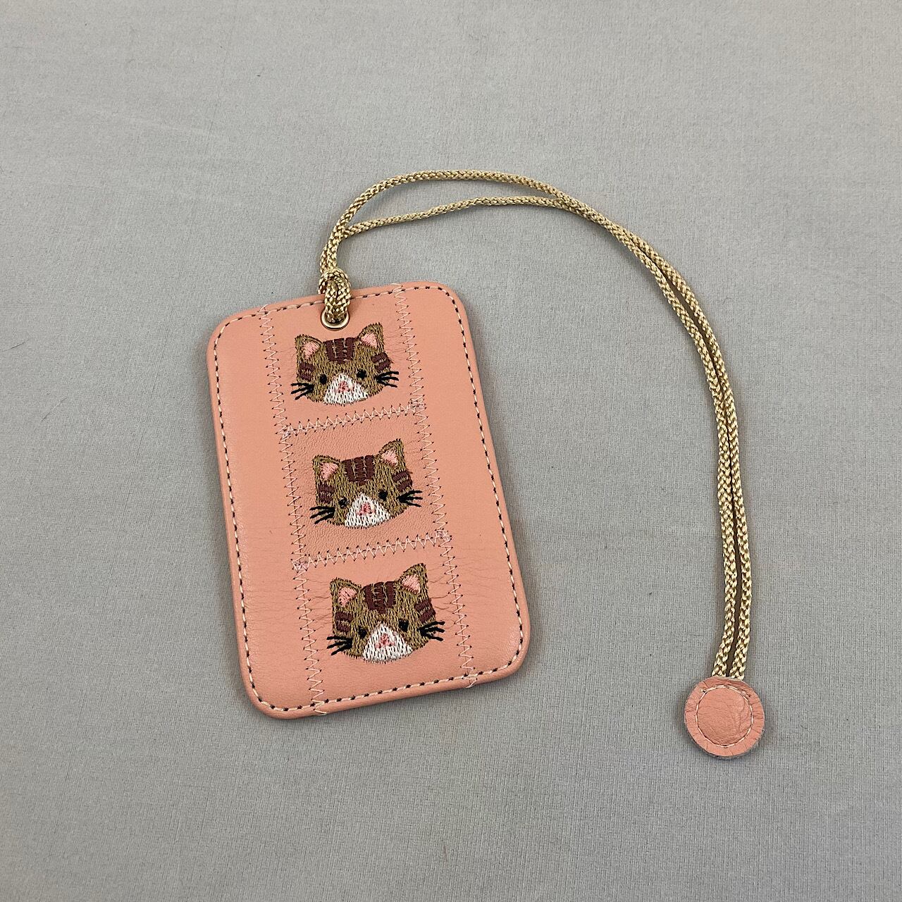 パスケース1枚用(ピンクに茶トラ猫の刺繍)No.03004-25