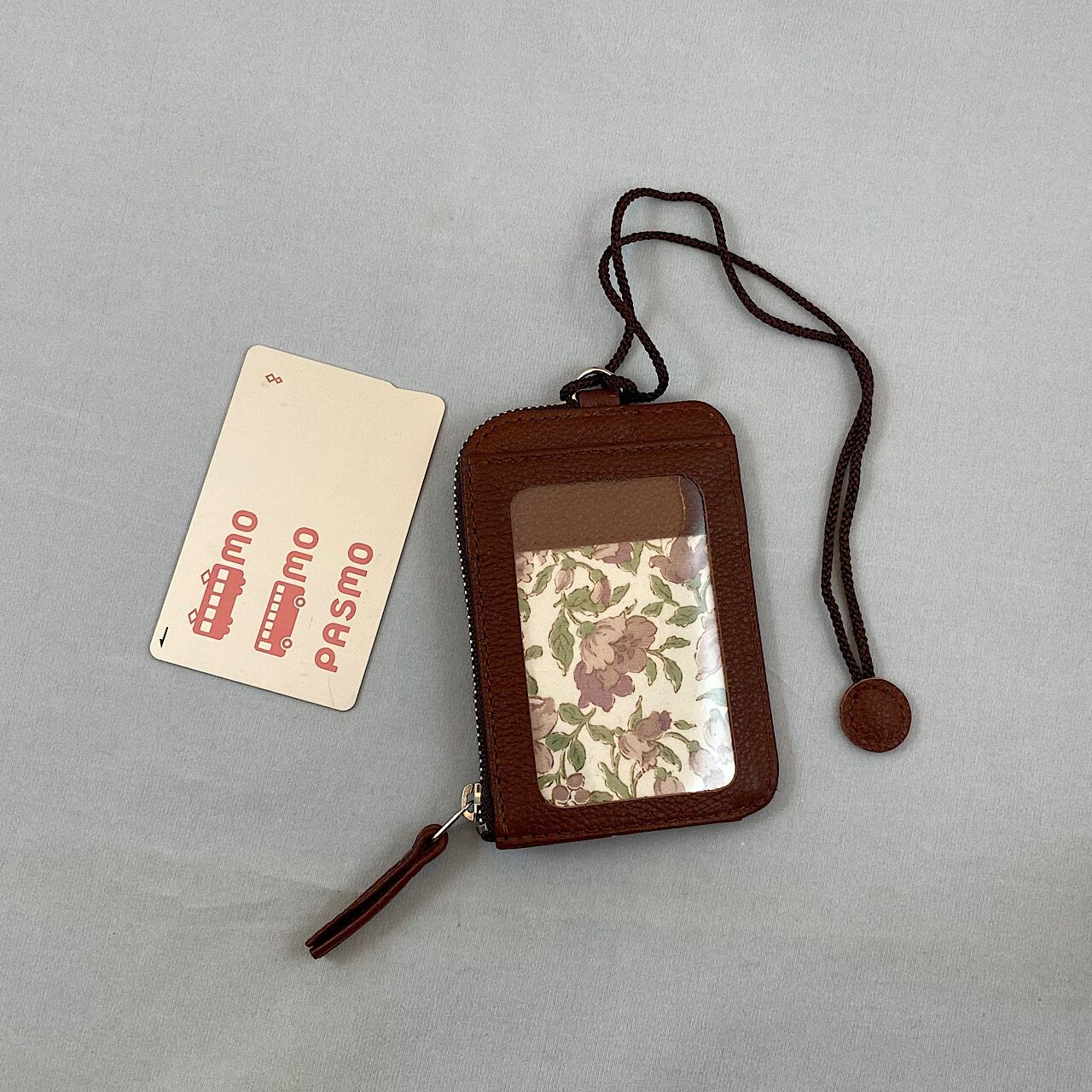 裏表両面にカードポケットがあり、間に小銭等が入るファスナーポケット付きのパスケースです。