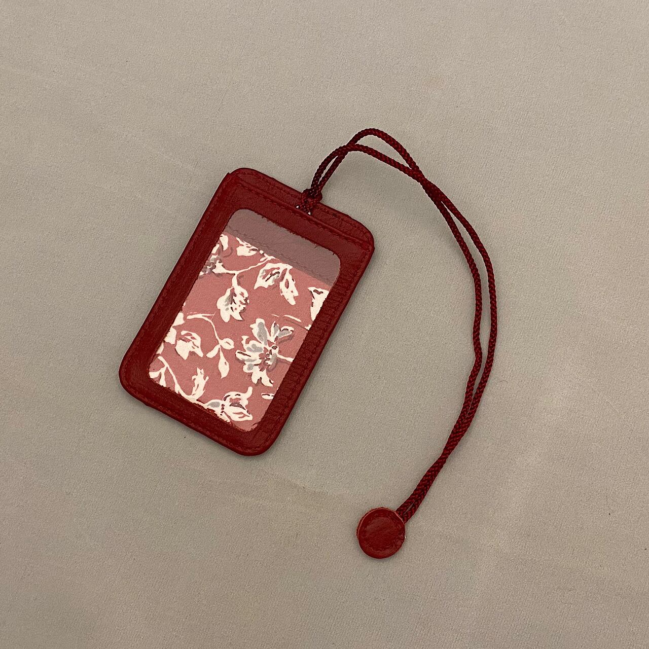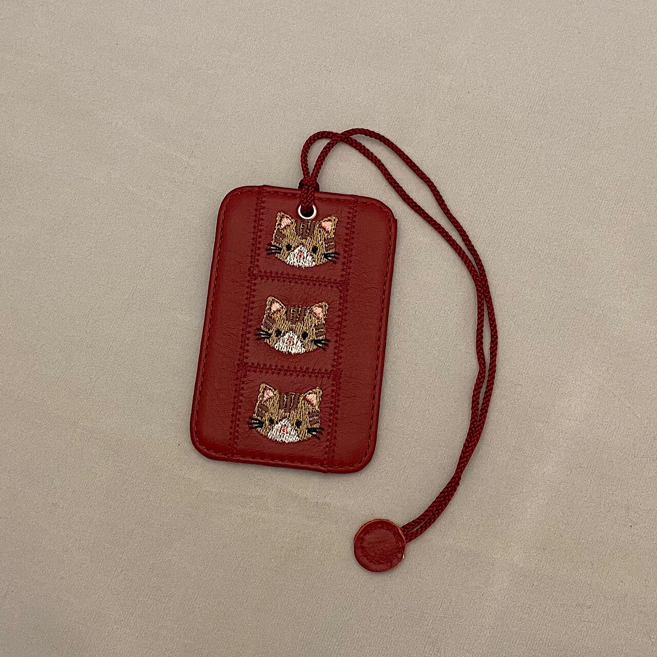 パスケース1枚用(ワインに茶トラ猫の刺繍)No.03004-27