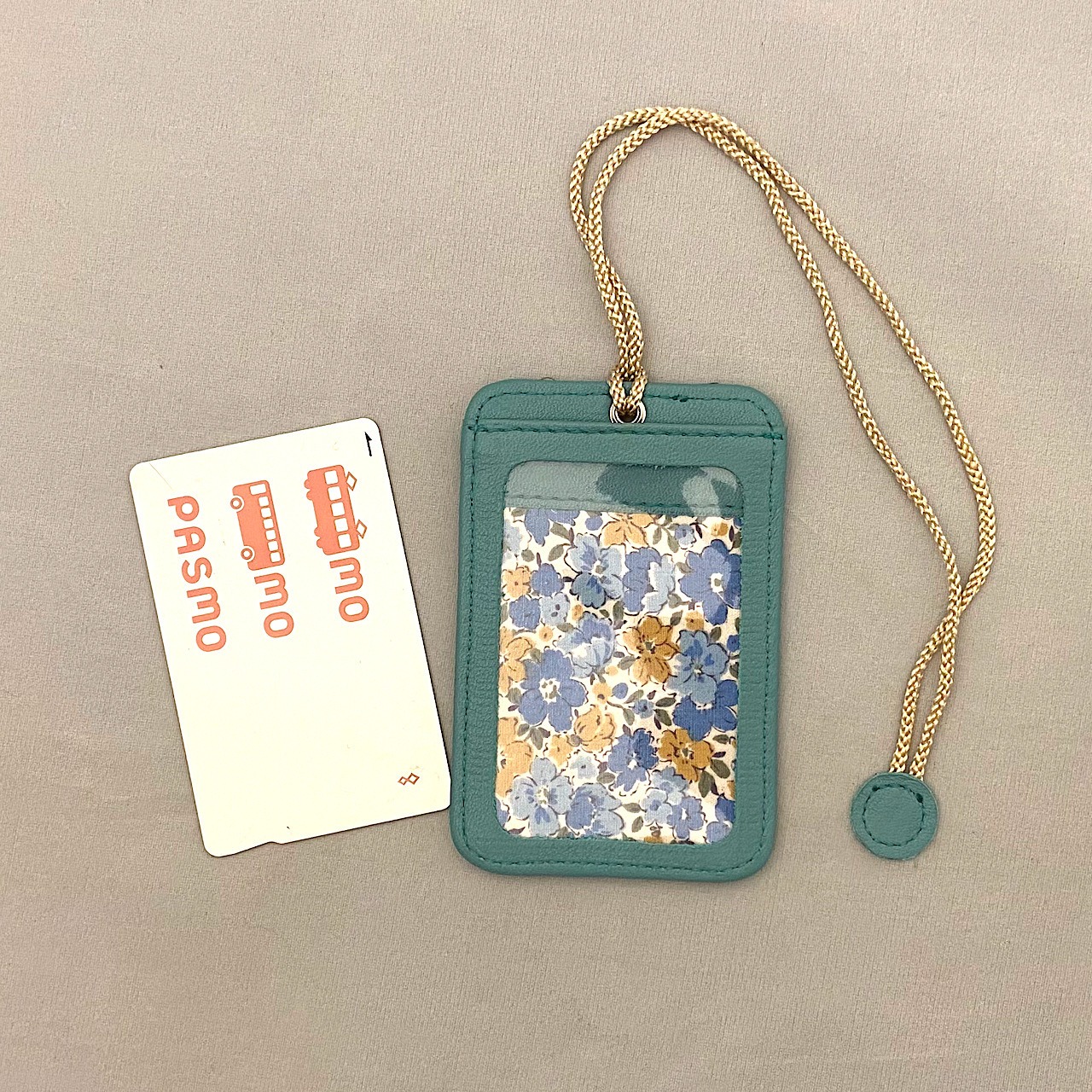 パスケース1枚用(ミントグリーンに茶トラ猫の刺繍)No.03004-29