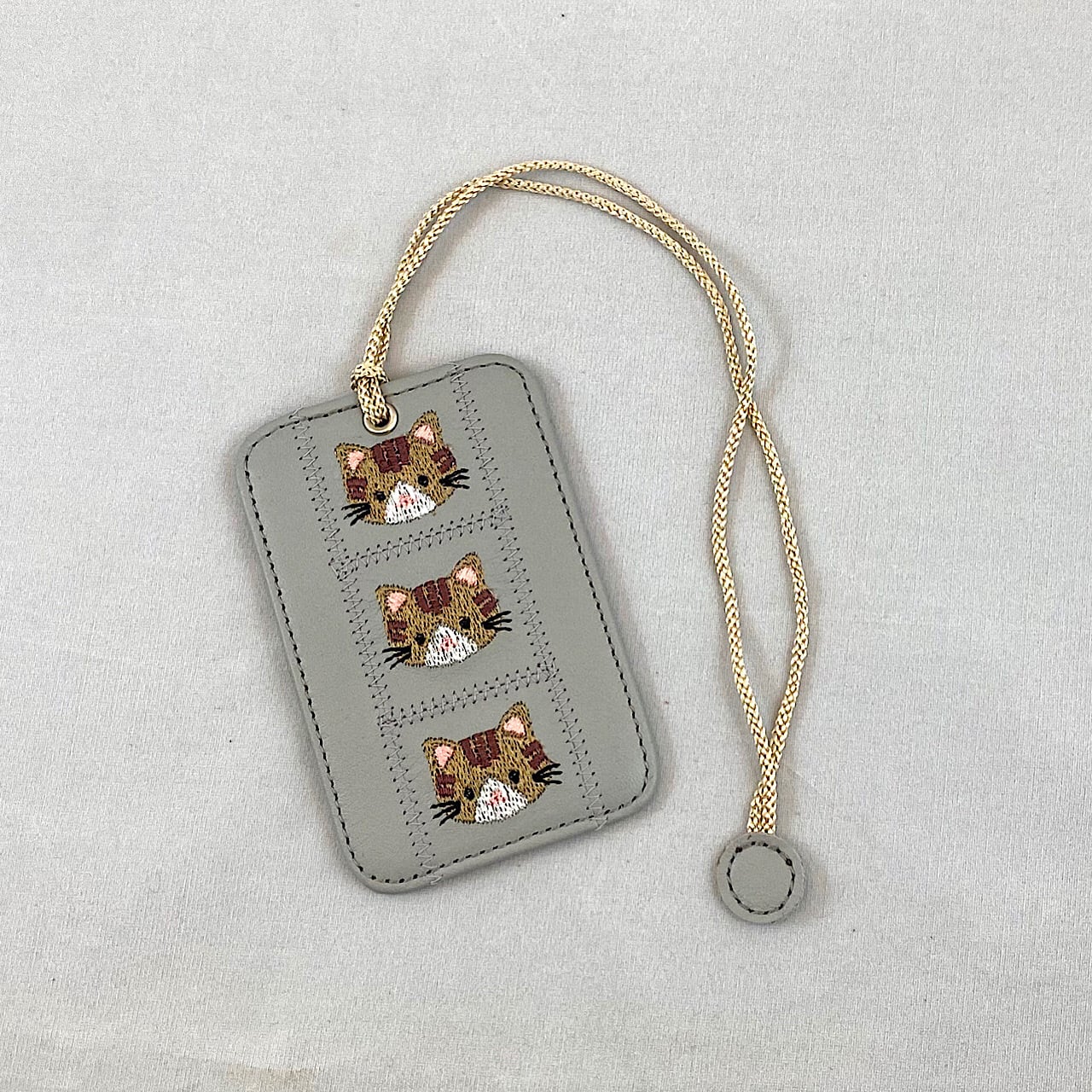 パスケース1枚用(ライトグレーに茶トラ猫の刺繍)No.03004-32