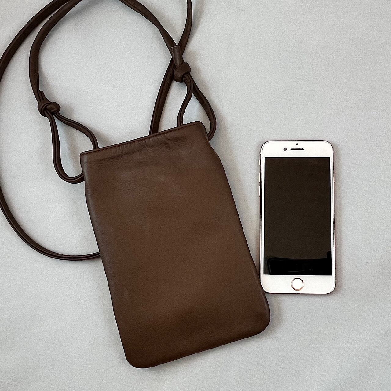 入れるところはポシェット本袋と前面の外ポケットの2か所。スマホはどちらでも入ります。