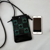 スマホポシェット(黒+グリーンに黒猫の刺繡)No.01014-02