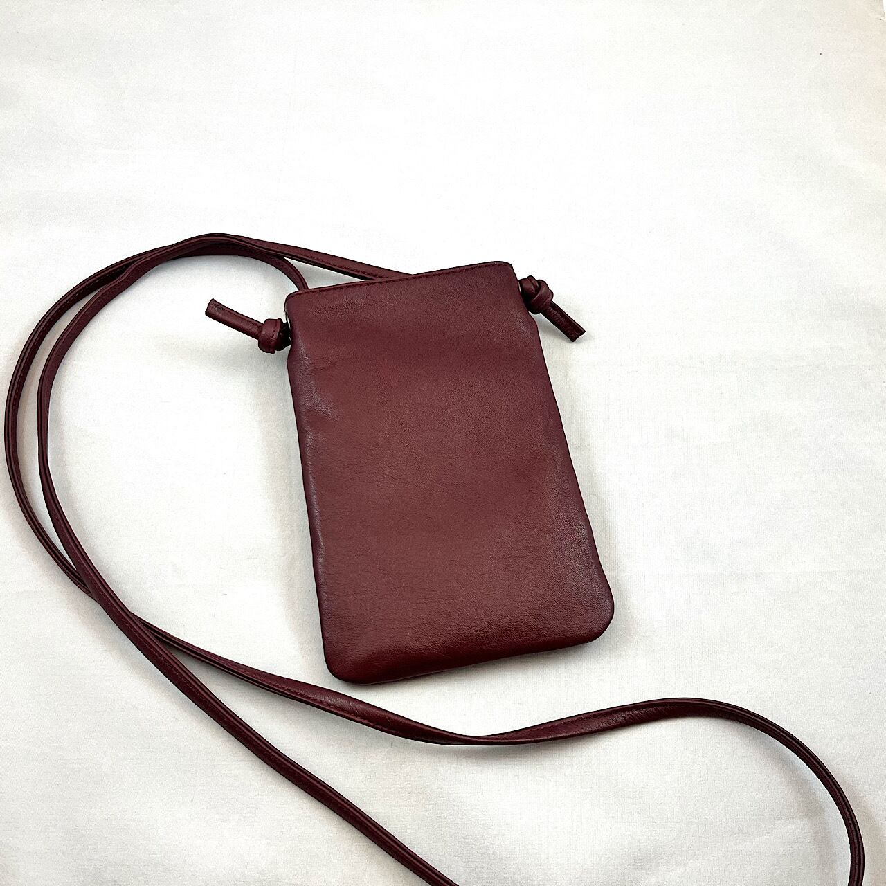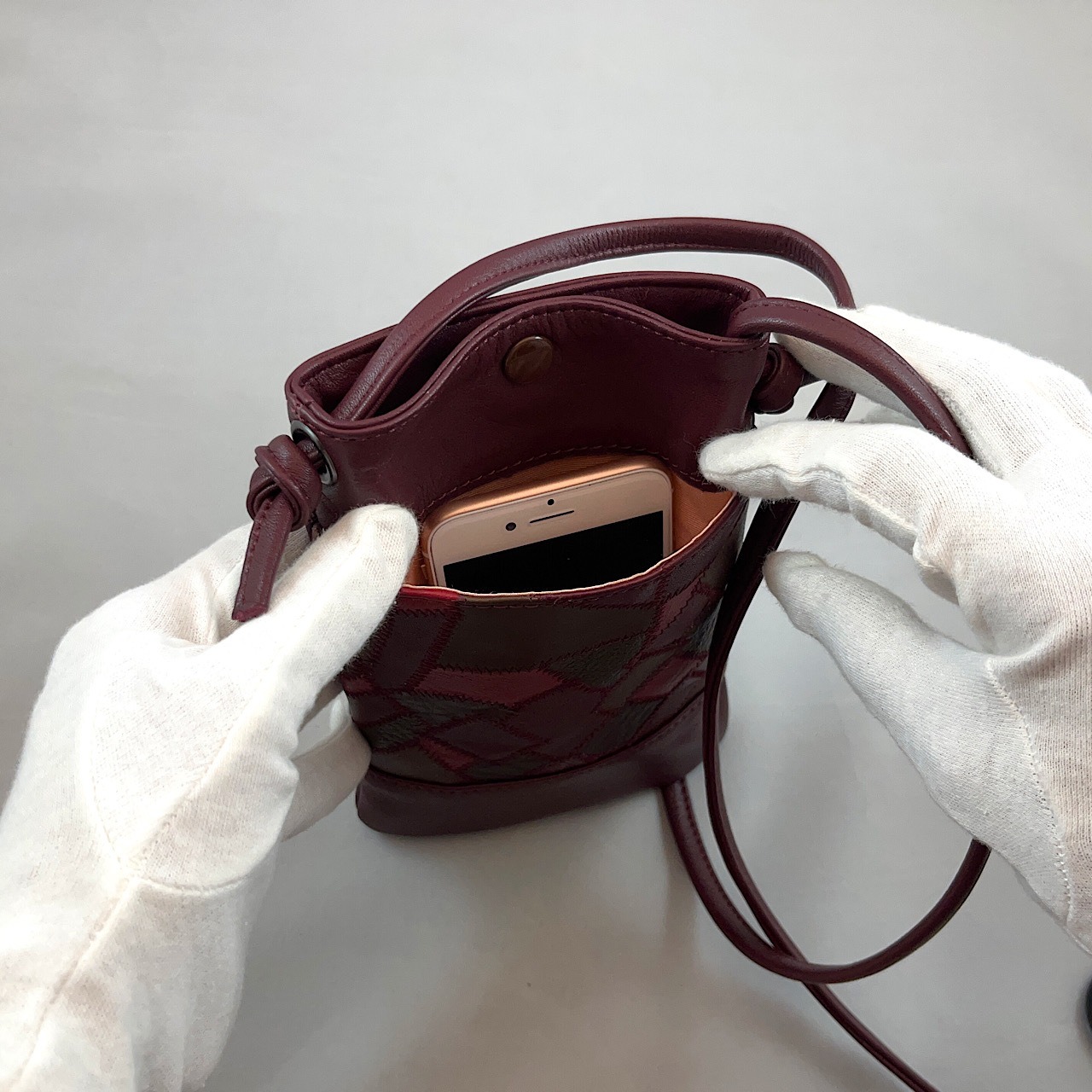スマホポシェット(濃エンジ系、革のクレイジーキルト)No.01014-03