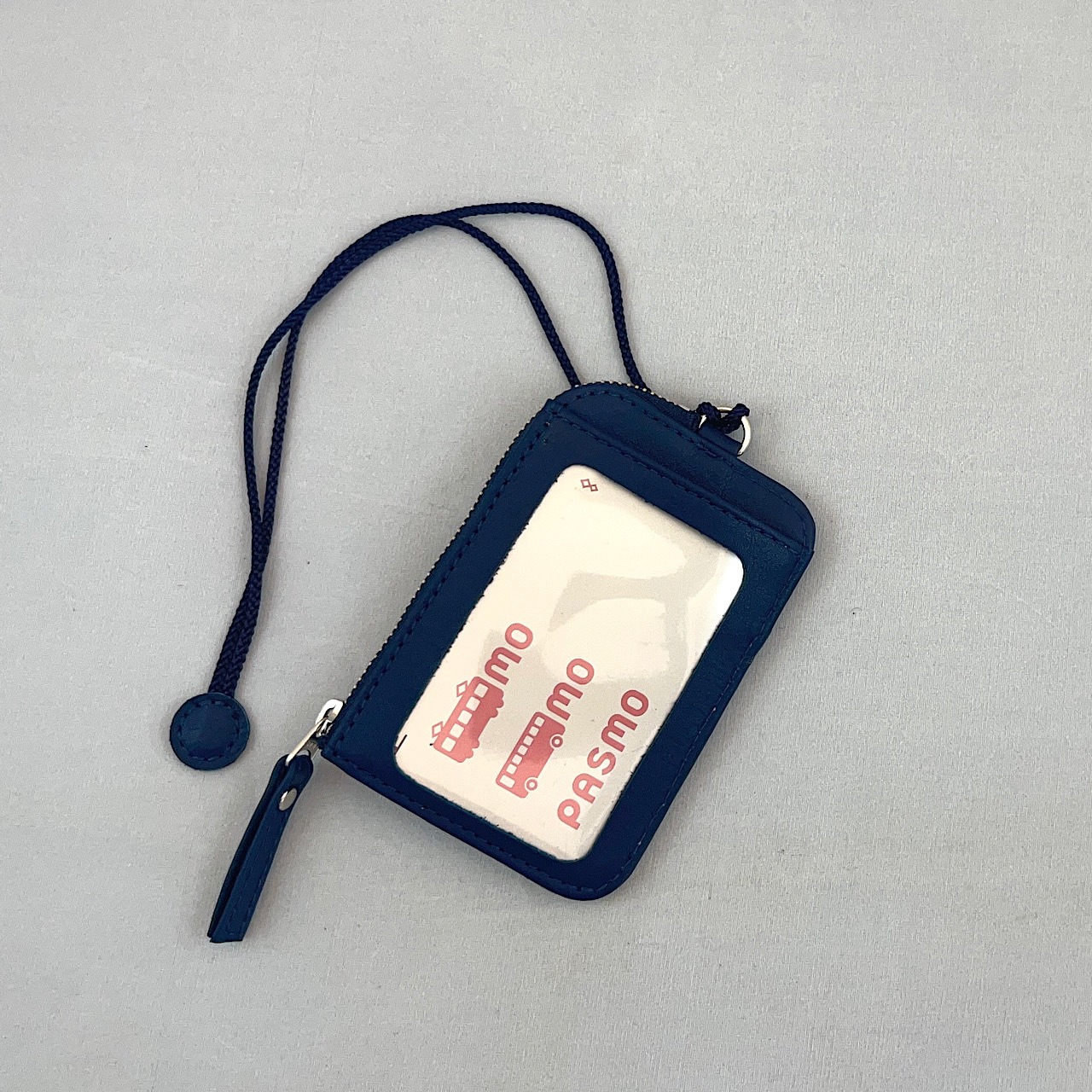 裏表両面にカードポケットがあり、間に小銭等が入るファスナーポケット付きのパスケースです。