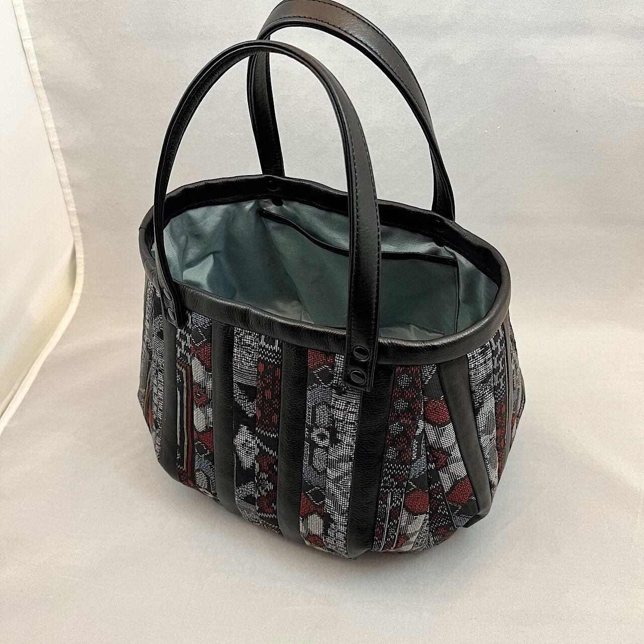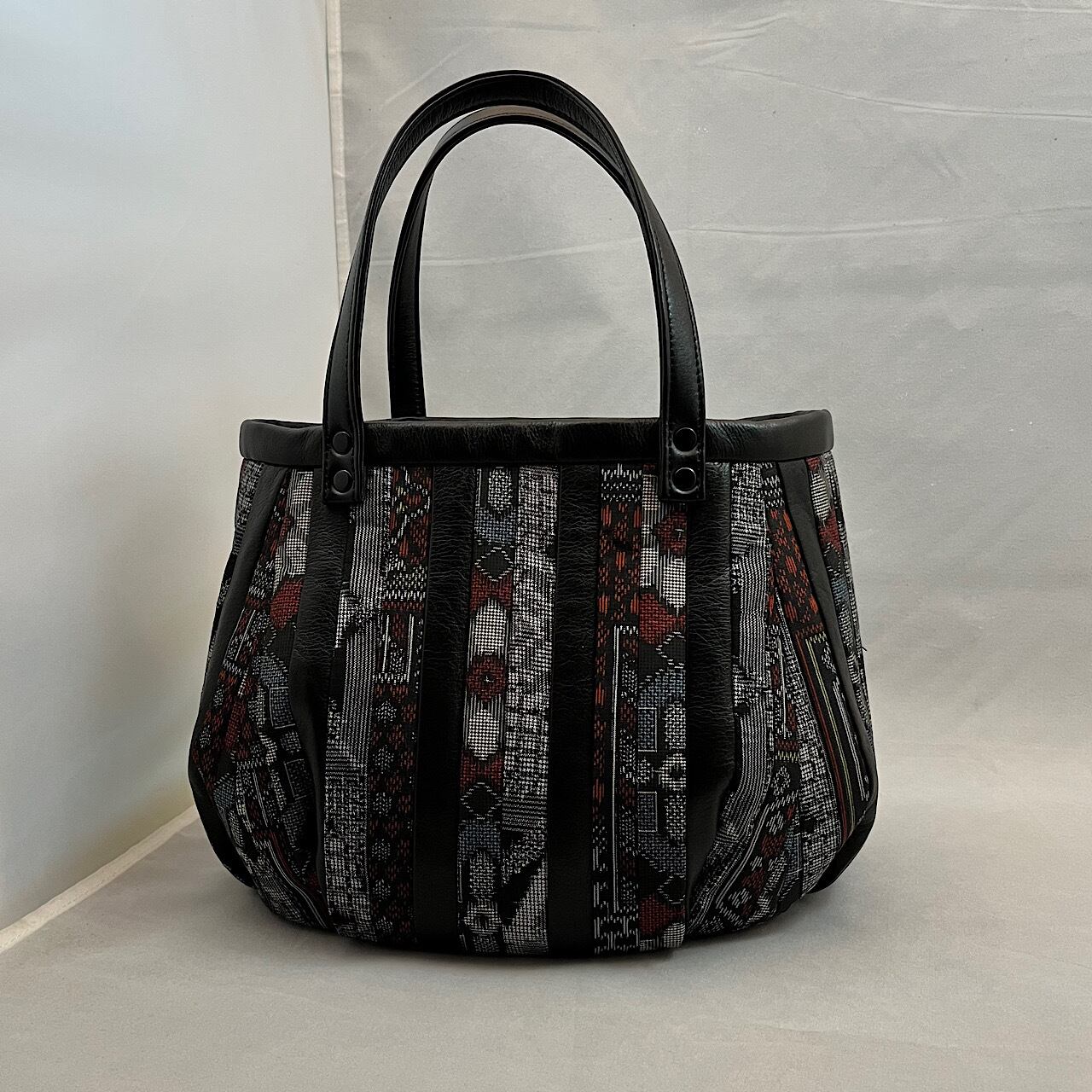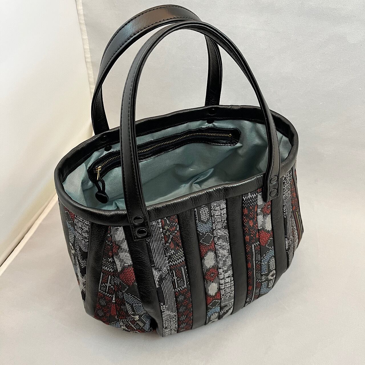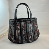 革と古布のパッチワークバッグ(黒系、大島紬) No.01016-07
