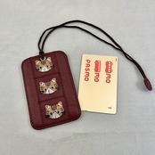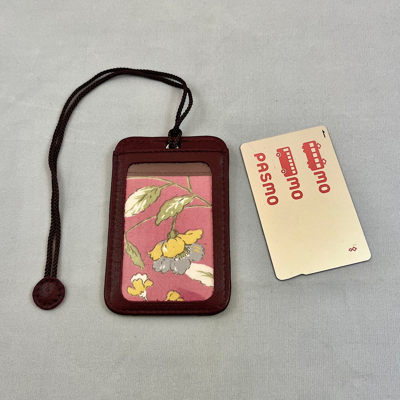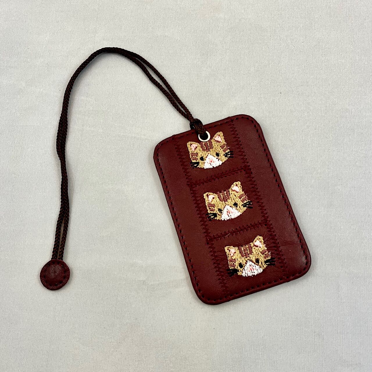 パスケース1枚用(濃いエンジに茶トラ猫の刺繍)No.03004-35