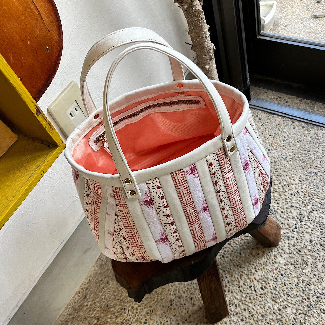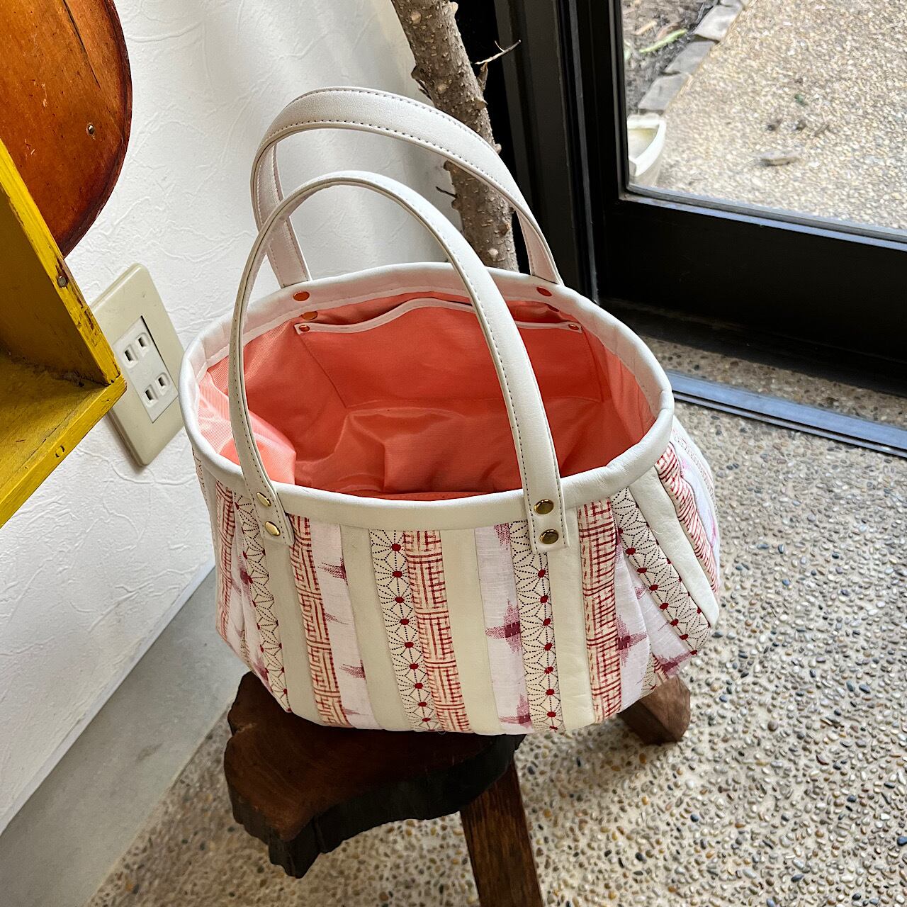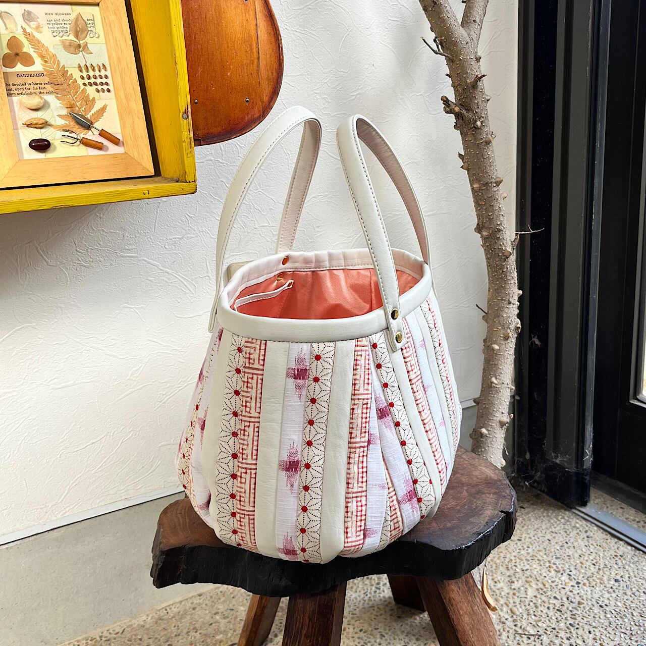 私は普段は革のバッグを作っていますが、布も好きで、殊に昔の着物の生地が好きで買い集めた古布や 祖母の時代から家にある着物を使ってバッグを作っています。