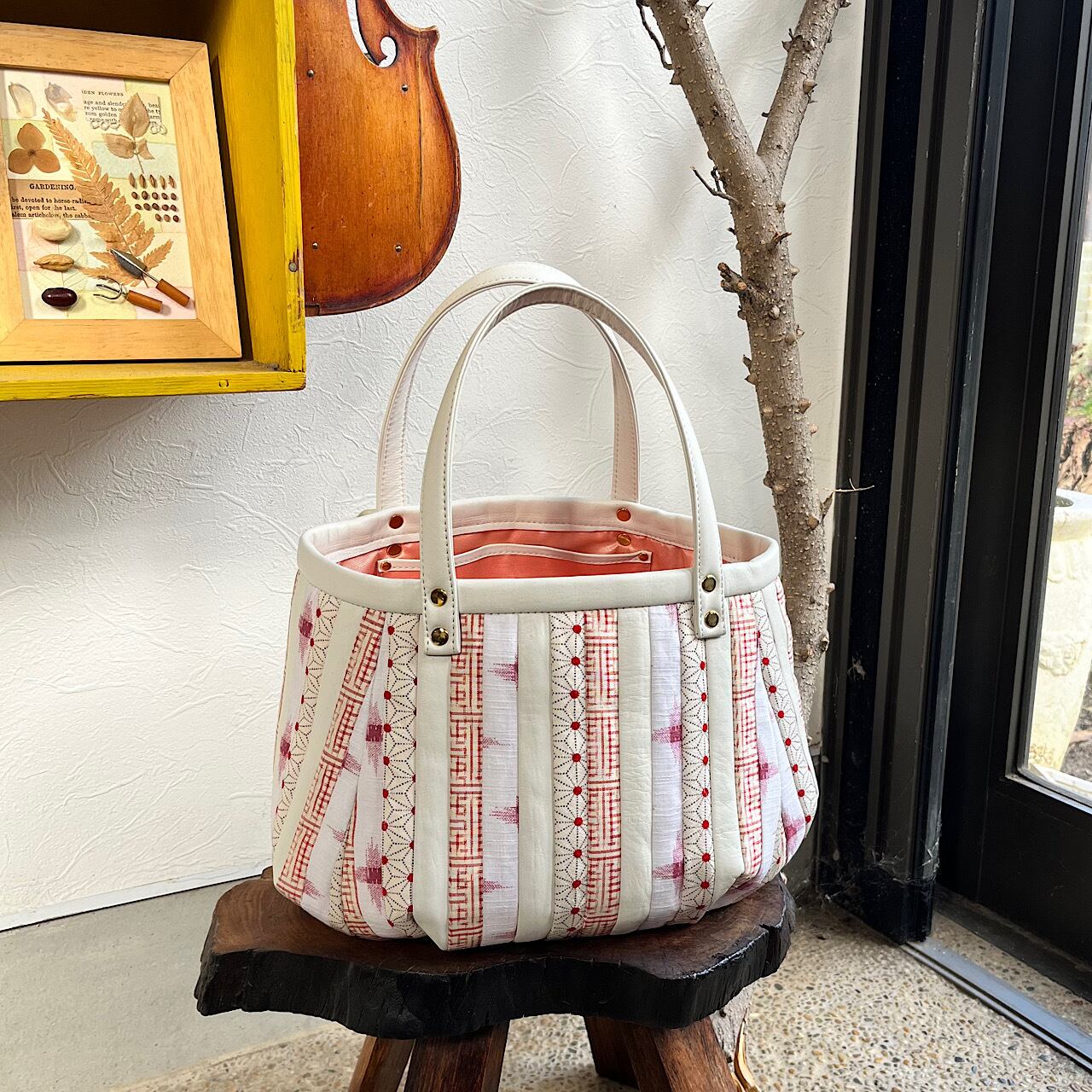 革と古布のパッチワークバッグ(オフホワイトの革+紬など) No.01016-14