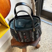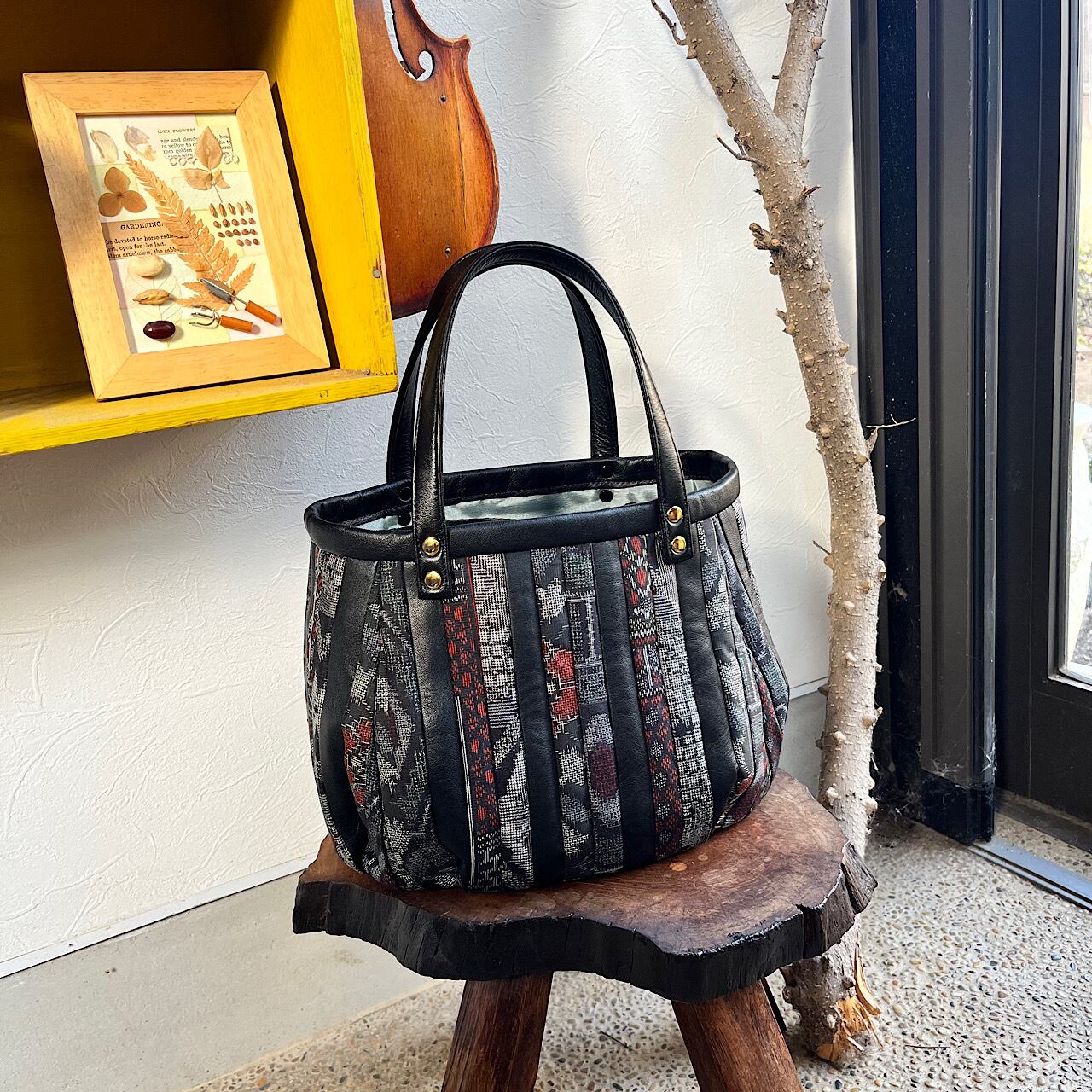 革と古布のパッチワークバッグ(黒の革+紬など) No.01016-15