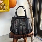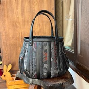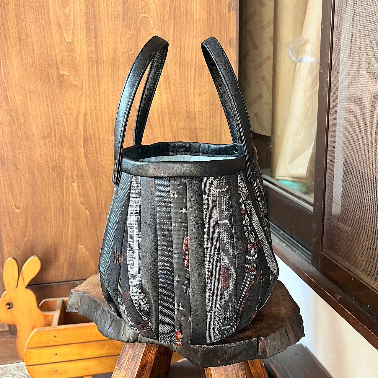革と古布のパッチワークバッグ(黒の革+紬など) No.01016-19