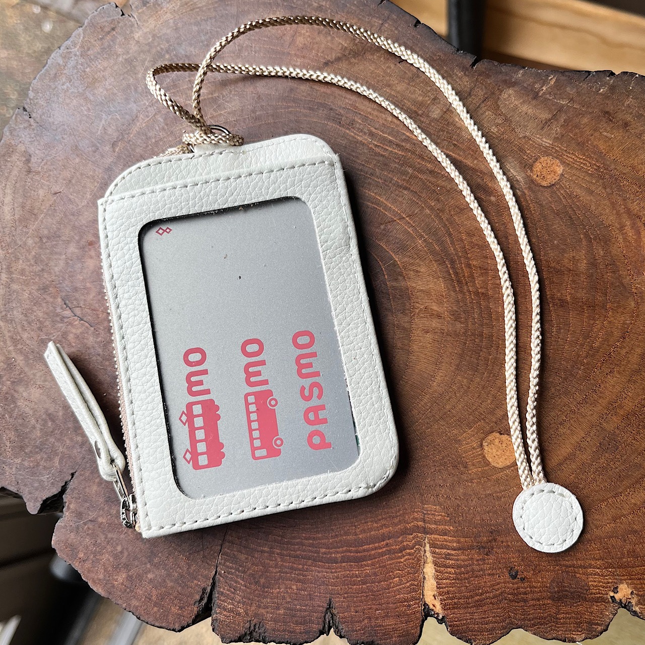 裏表両面にカードポケットがあり、間に小銭等が入るファスナーポケット付きのパスケースです。