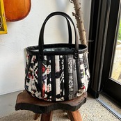 革と古布のパッチワークバッグ(黒の革+銘仙) No.01016-22