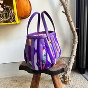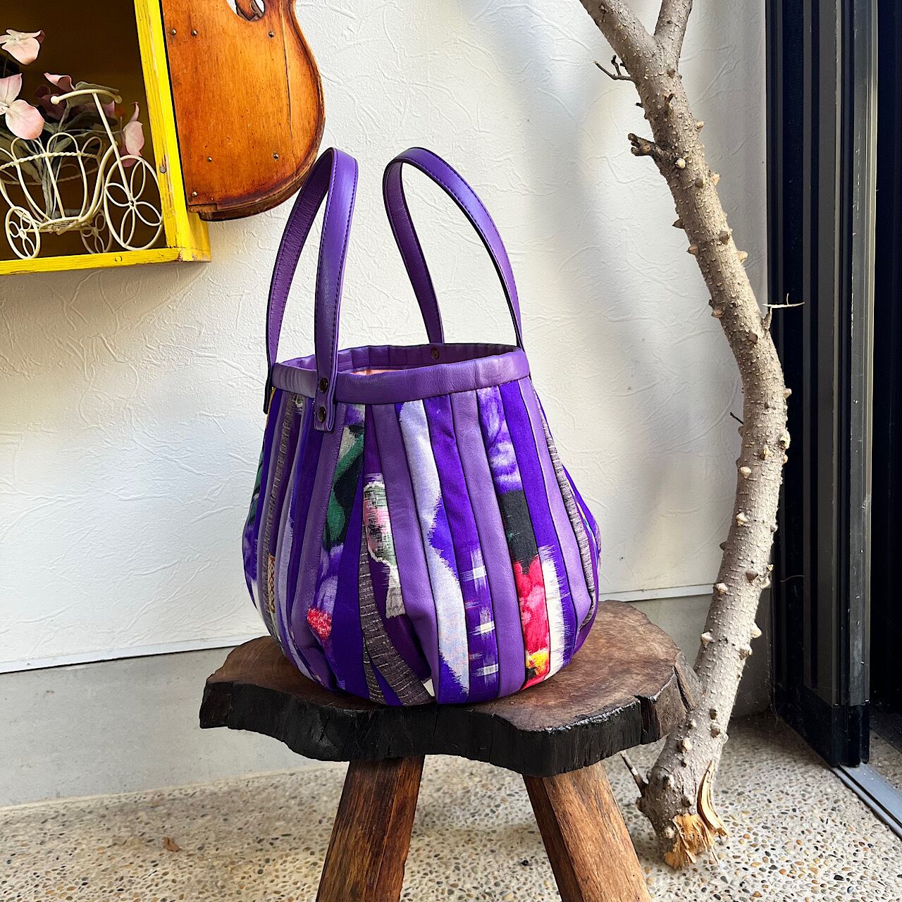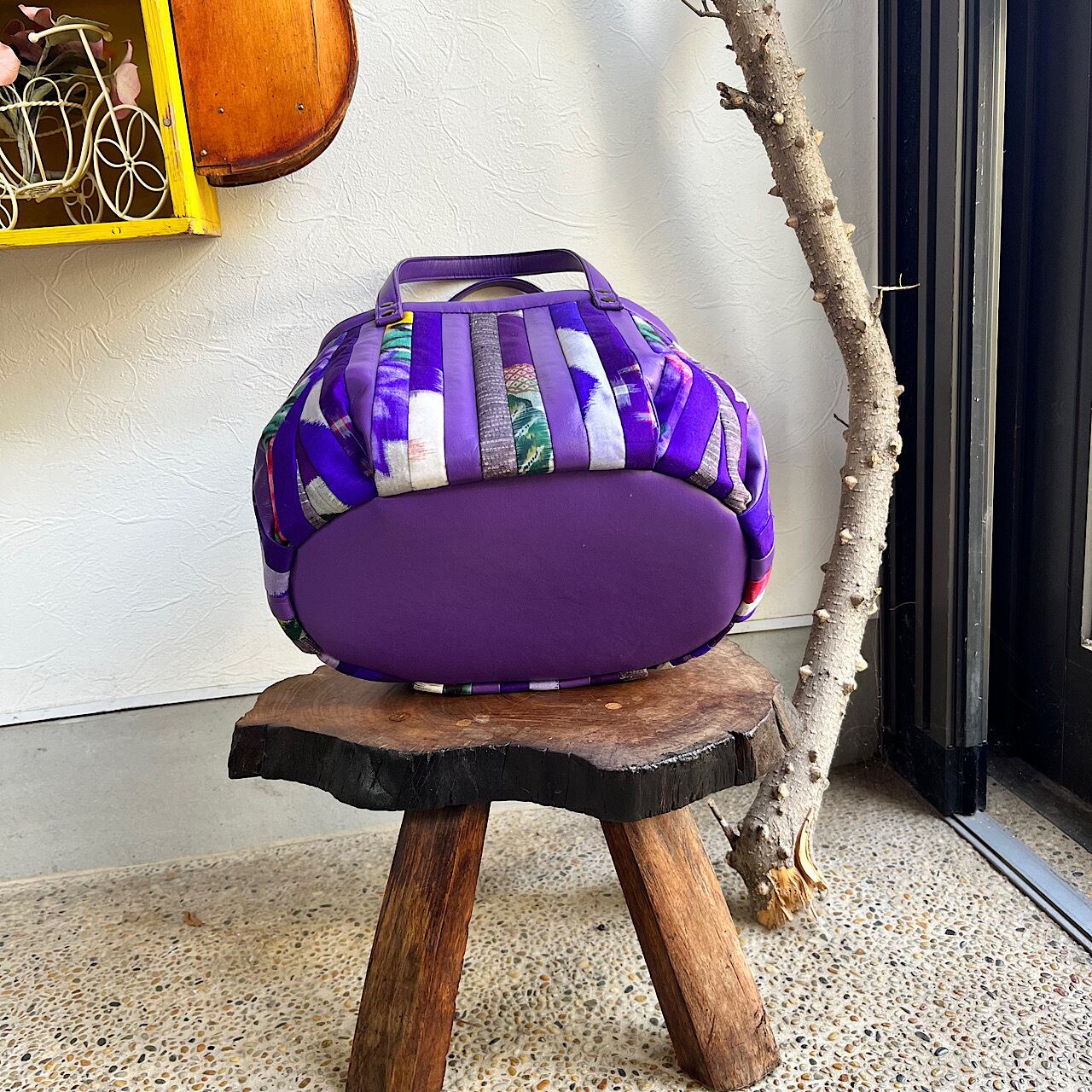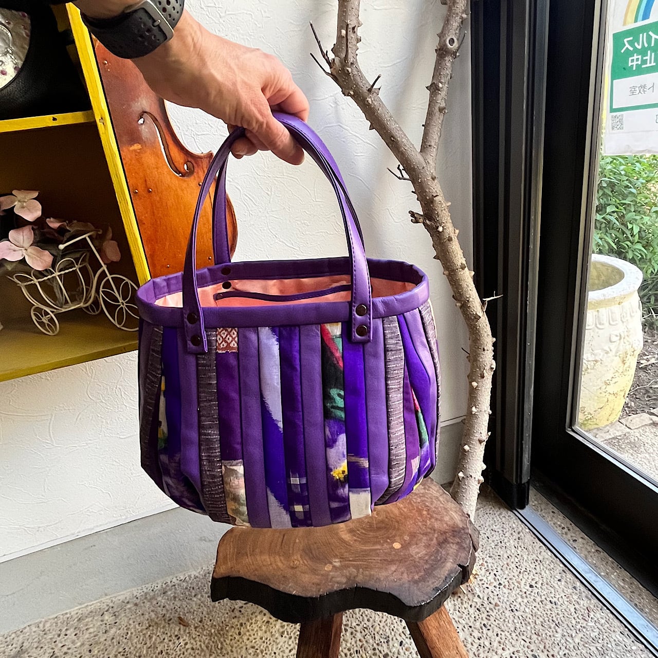 革と古布のパッチワークバッグ(パープルの革+銘仙など) No.01016-25
