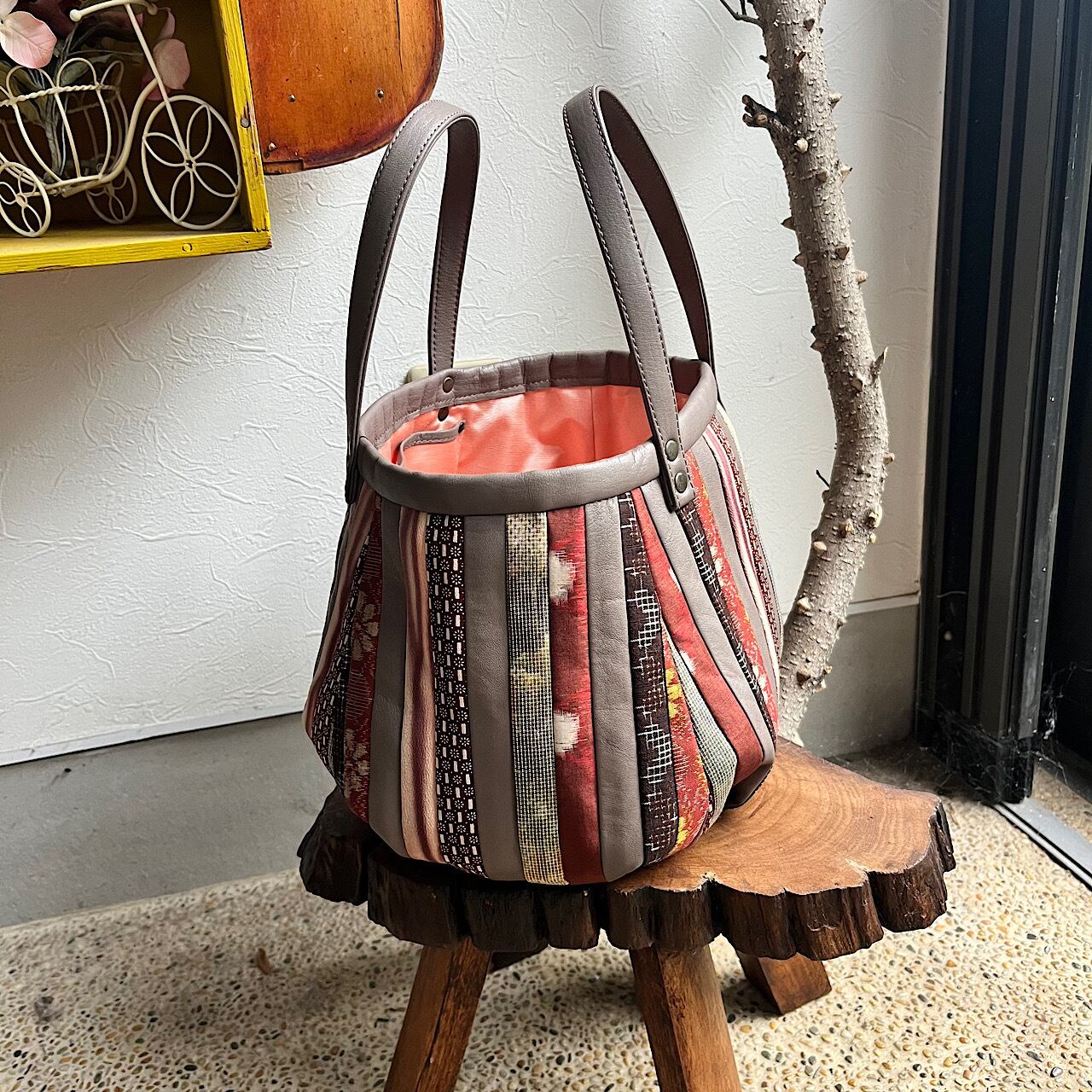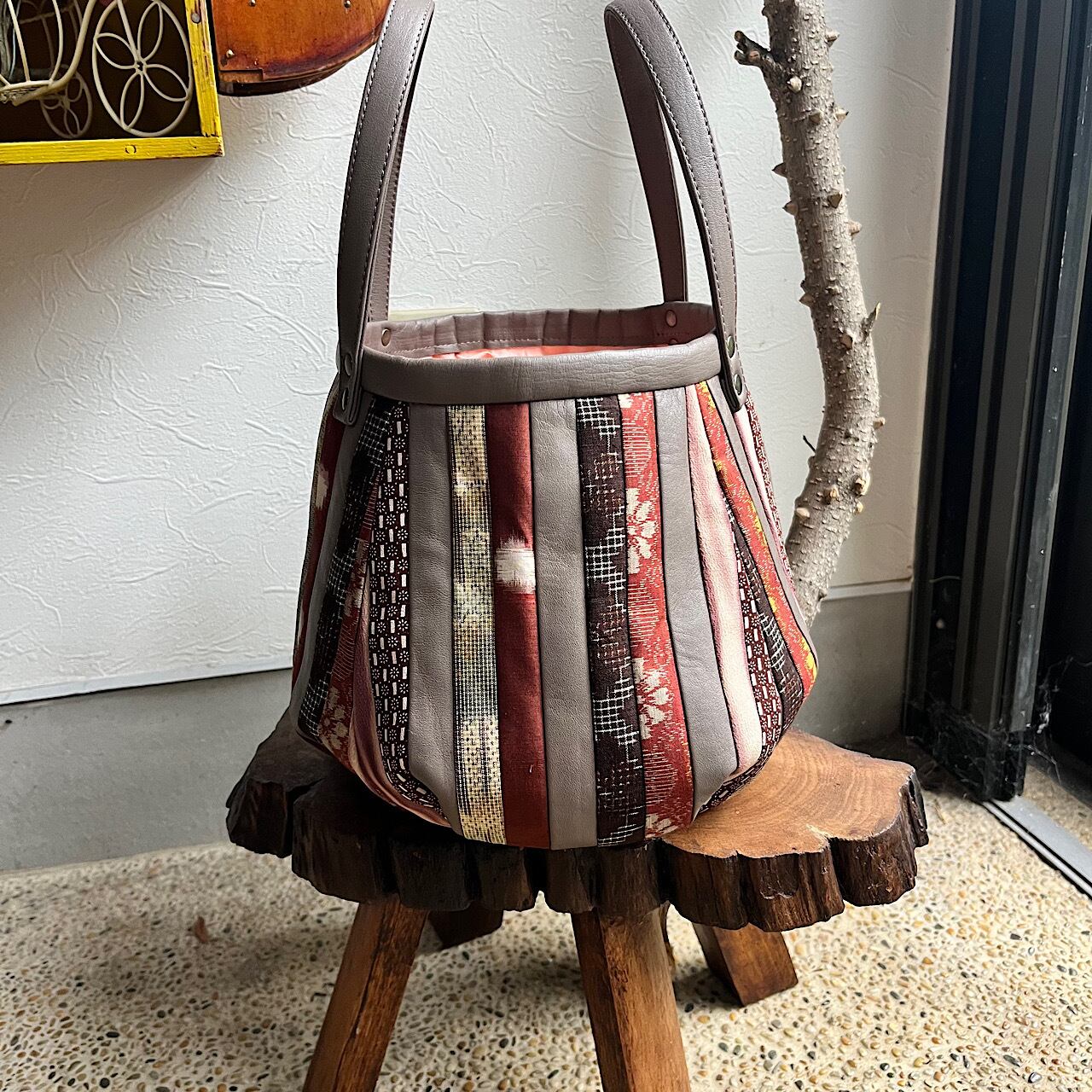 私は普段は革のバッグを作っていますが、布も好きで、殊に昔の着物の生地が好きで買い集めた古布や 祖母の時代から家にある着物を使ってバッグを作りました。どうぞよろしくお願いいたします。