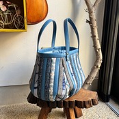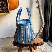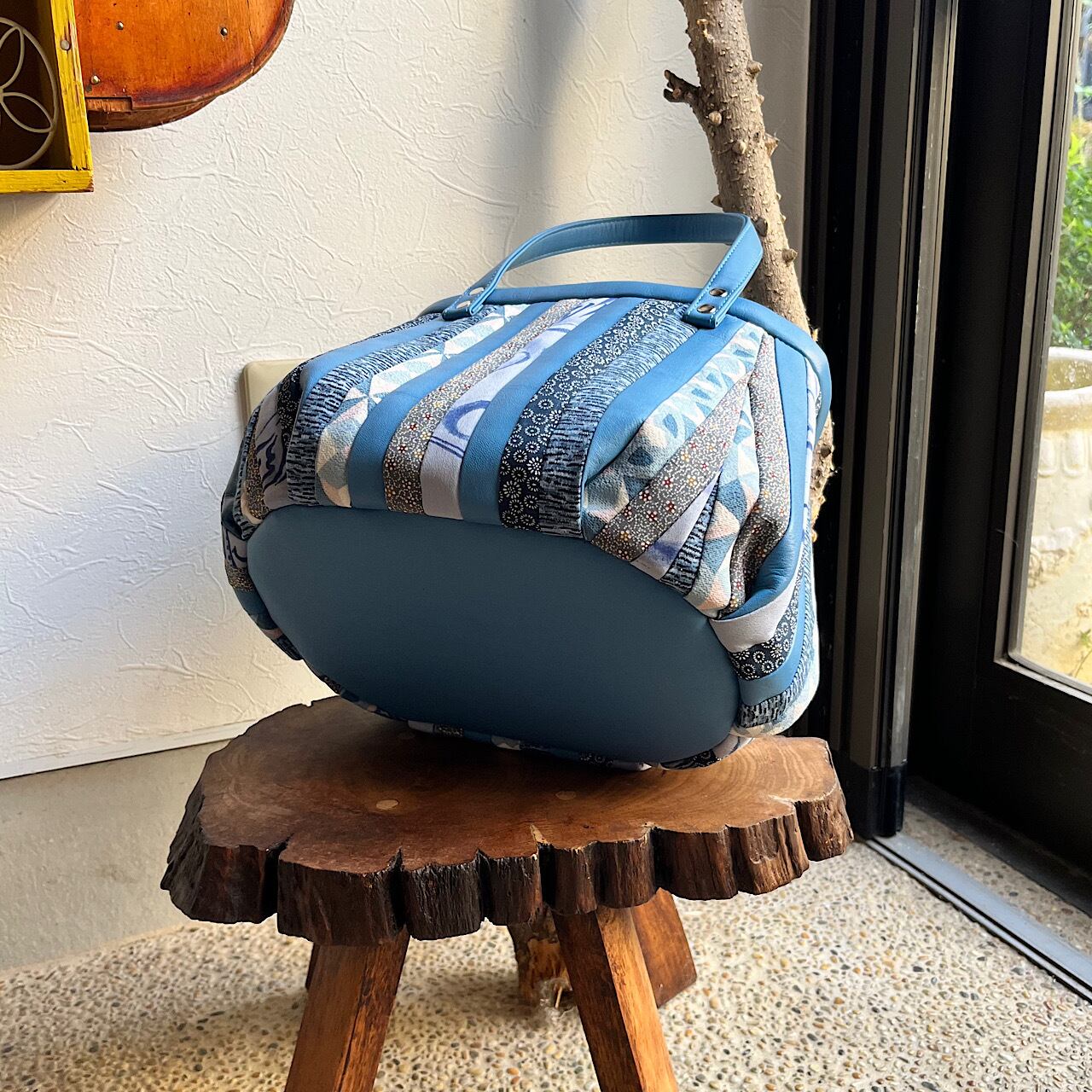 革と古布のパッチワークバッグ(スカイブルーの革+着物生地)No.01016-38