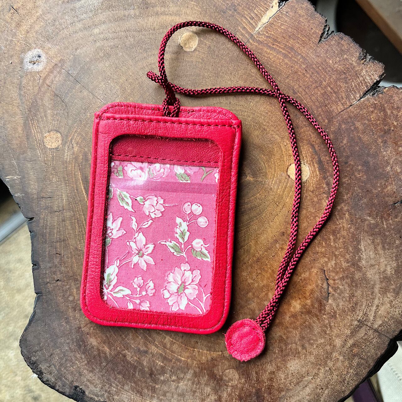 パスケース1枚用(赤に茶トラ猫の刺繍)No.03004-46