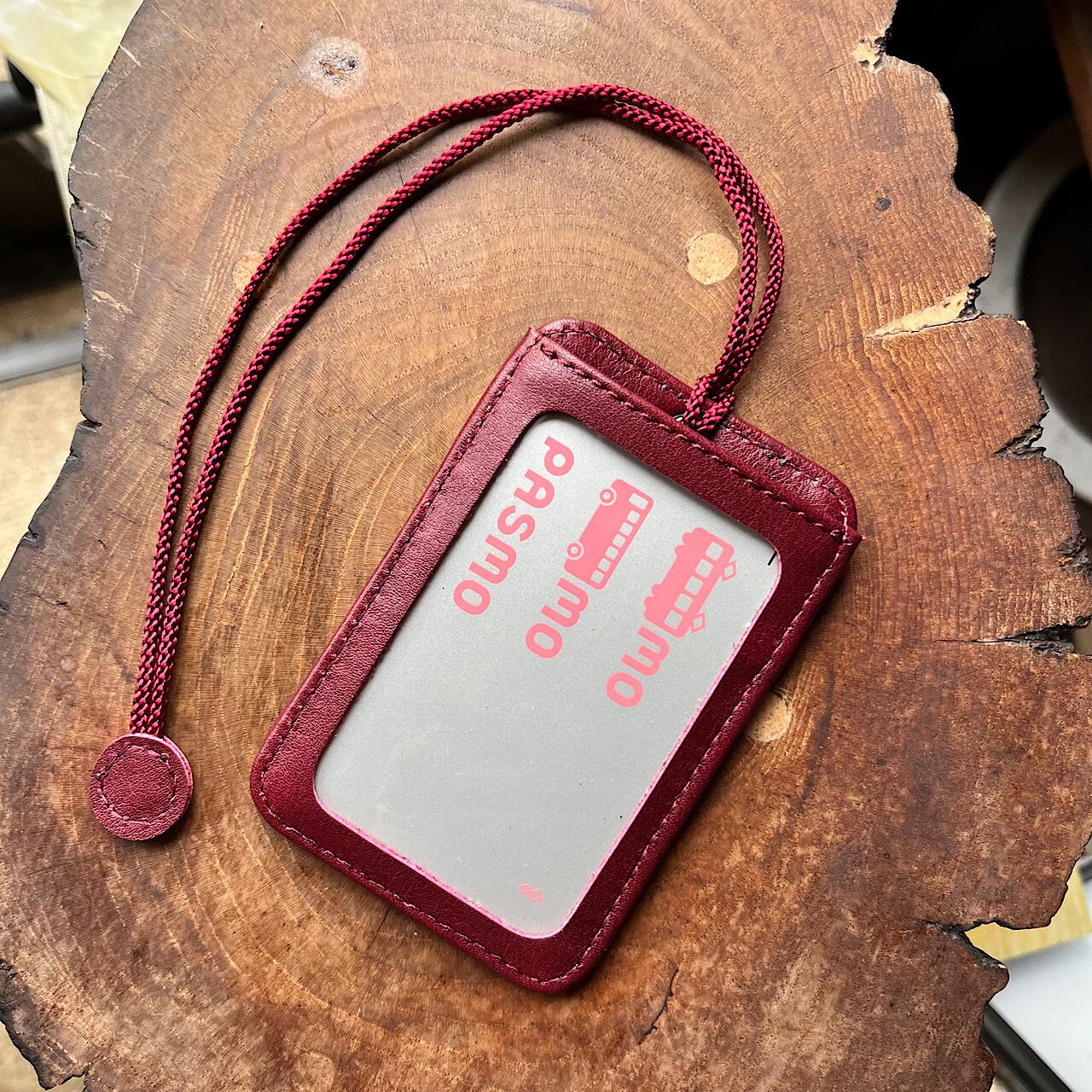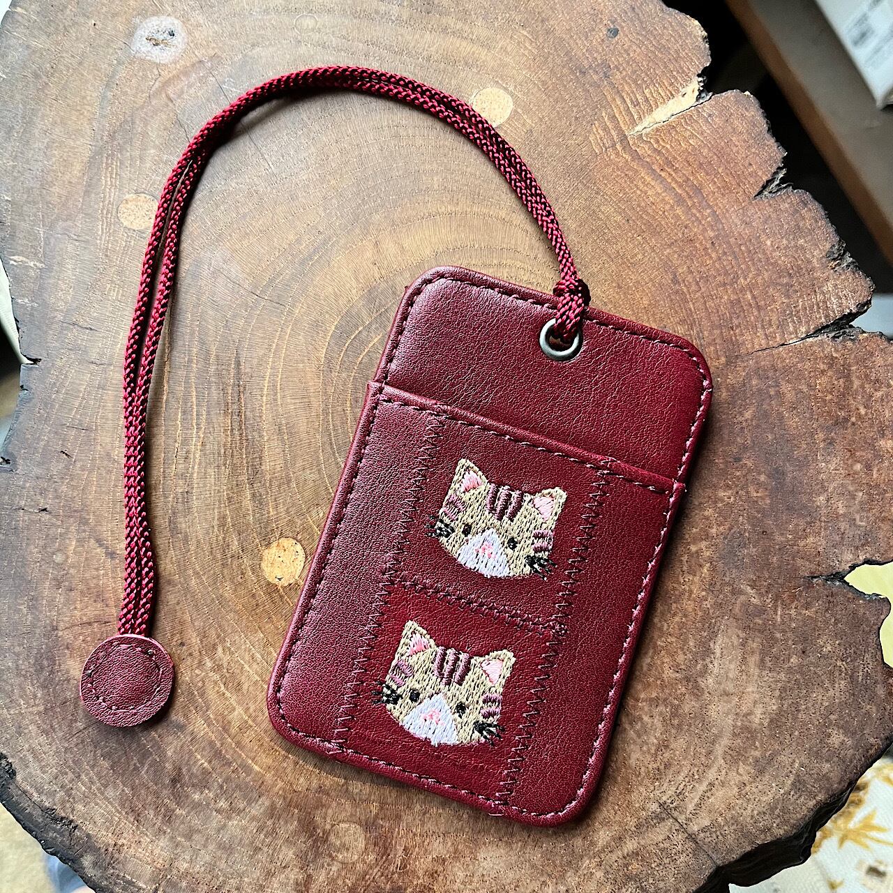 両面パスケース(濃いエンジに茶トラ猫の刺繡)2枚用 No.03005-09