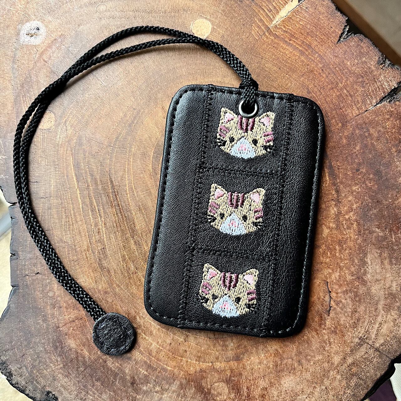 パスケース1枚用(ブラックに茶トラ猫の刺繍)No.03004-49