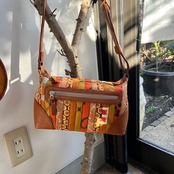 革と古布のパッチワークミニショルダー(赤茶系) No.01018-03