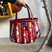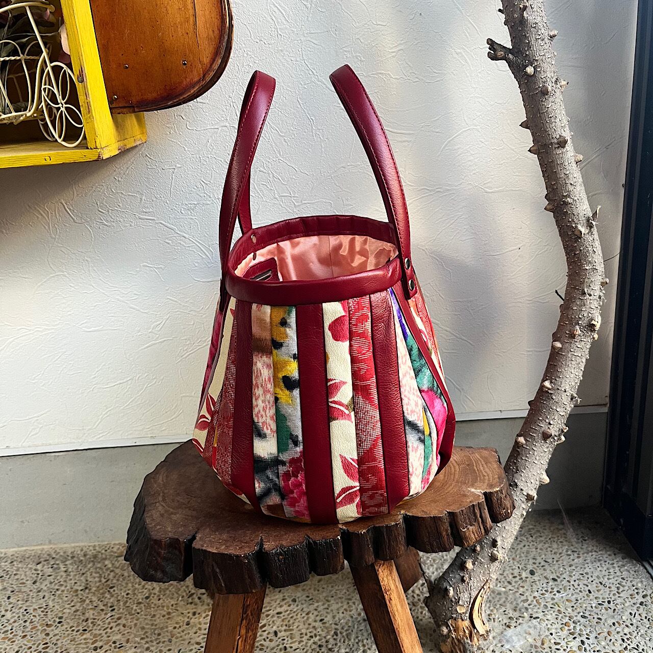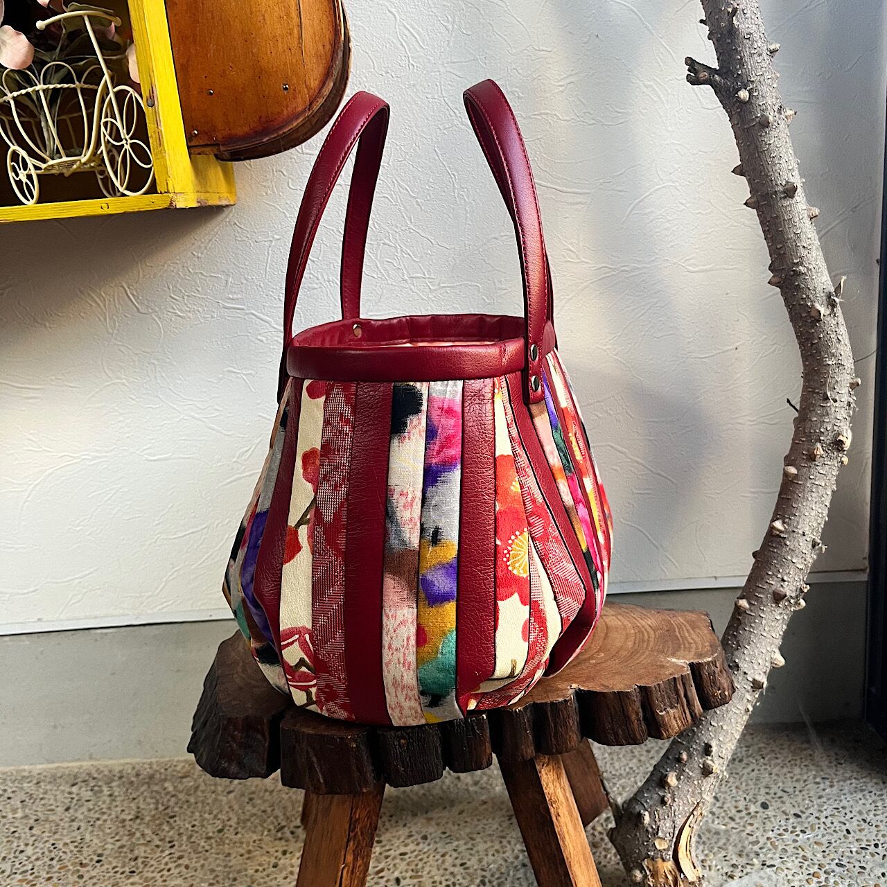 革と古布のパッチワークバッグ(ワインレッドの革+着物生地)No.01016-64