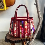 私は普段は革のバッグを作っていますが、布も好きで、殊に昔の着物の生地が好きで買い集めた古布や 祖母の時代から家にある着物を使ってバッグを作りました。どうぞよろしくお願いいたします。