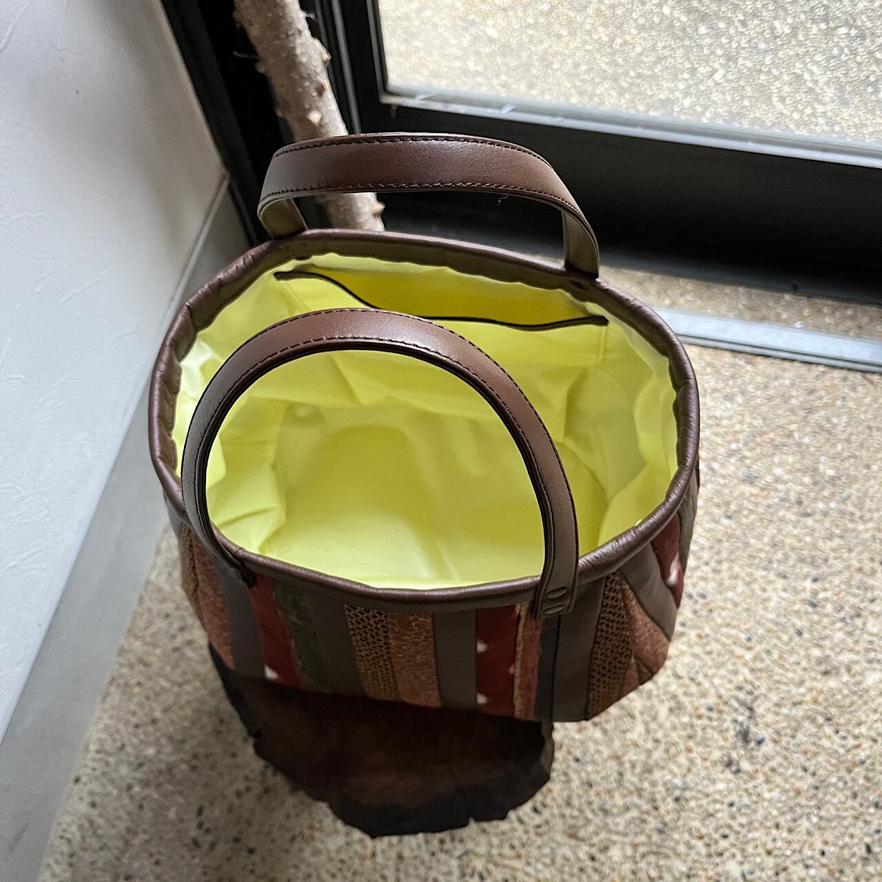 私は普段は革のバッグを作っていますが、布も好きで、殊に昔の着物の生地が好きで買い集めた古布や 祖母の時代から家にある着物を使ってバッグを作りました。どうぞよろしくお願いいたします。