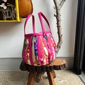 革と古布のパッチワークバッグ(ディープピンクの革+着物生地)No.01016-69