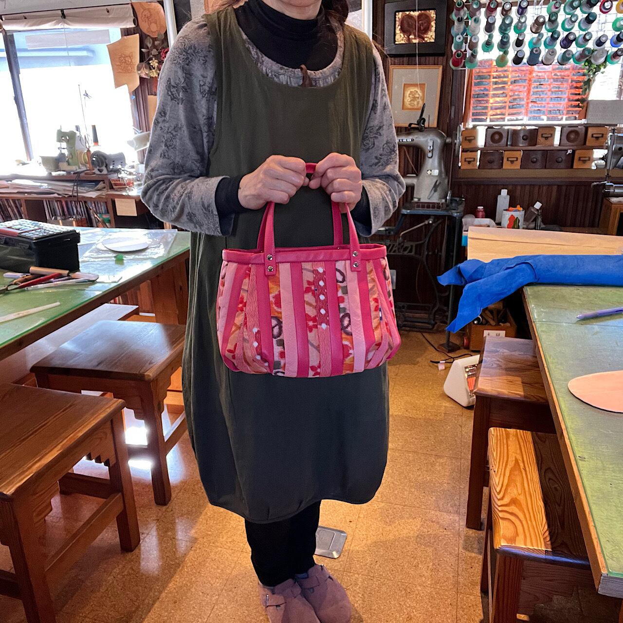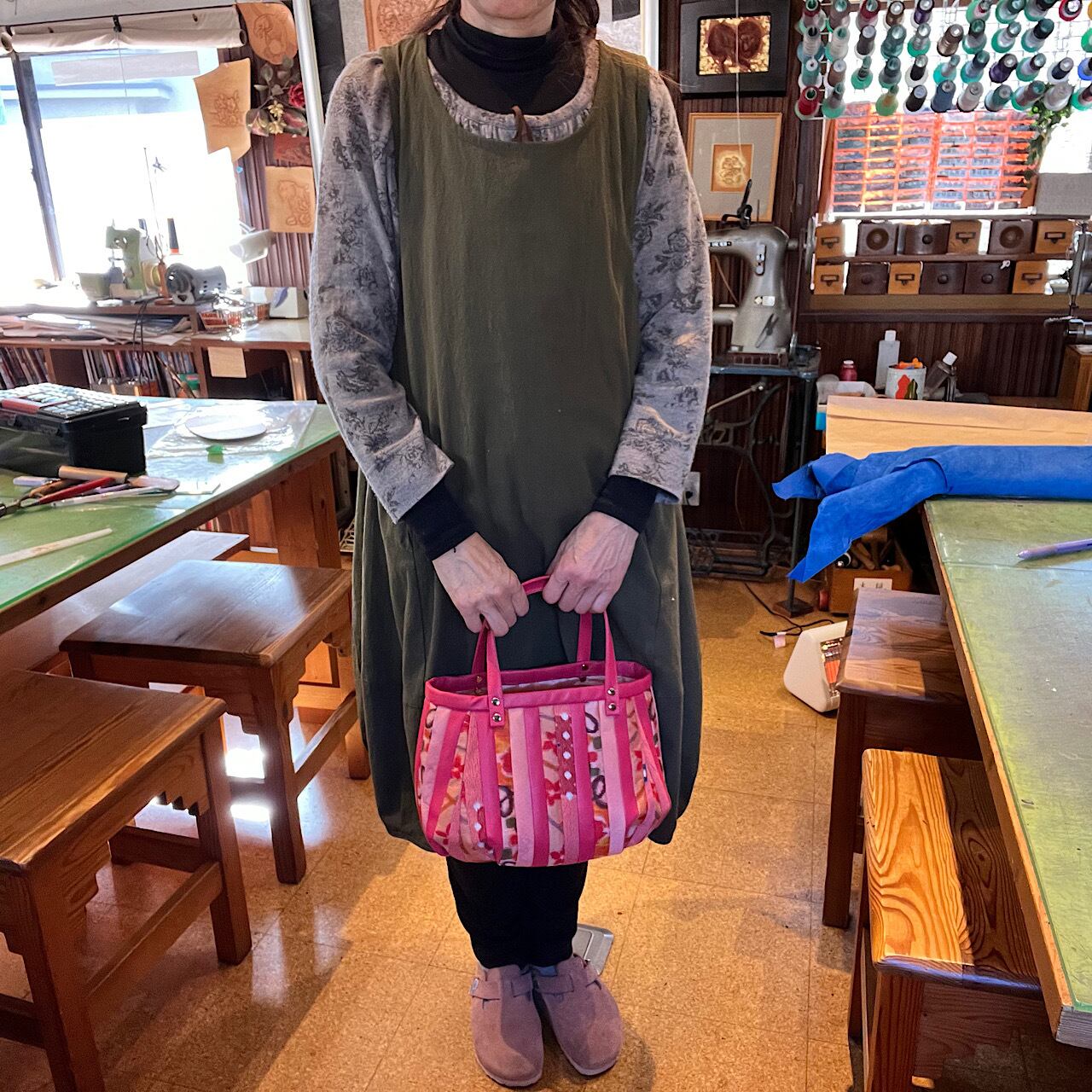 私は普段は革のバッグを作っていますが、布も好きで、殊に昔の着物の生地が好きで買い集めた古布や 祖母の時代から家にある着物を使ってバッグを作りました。どうぞよろしくお願いいたします。